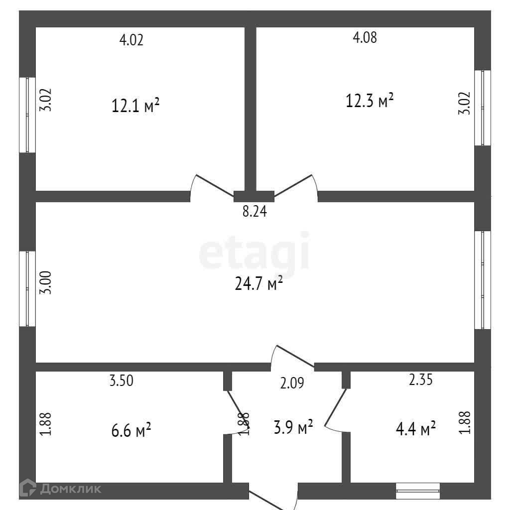 В доме две спальни - 12,3 и 12,1 кв.