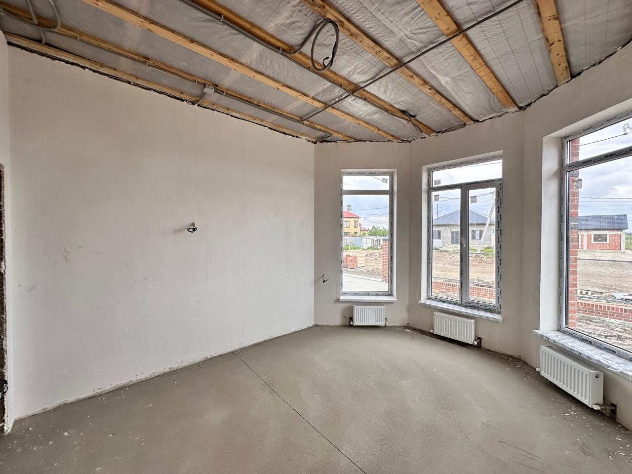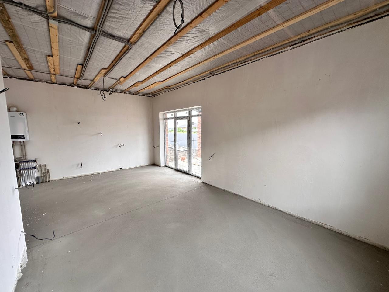 Выполнена предчистовая отделка, стены отштукатурены в чистовую под маяки, медная электроразводка ГОСТ, механизированная стяжка.