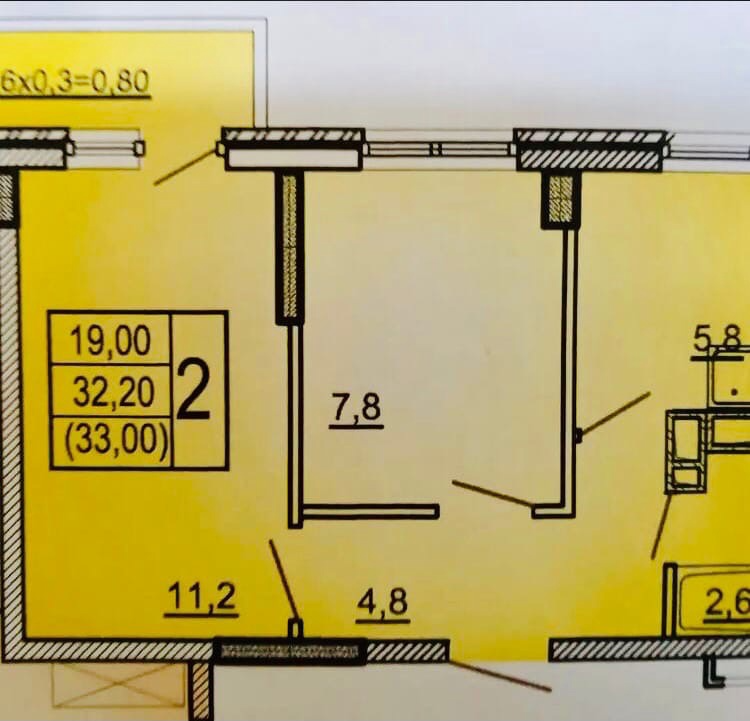 Общая площадь 33 м2