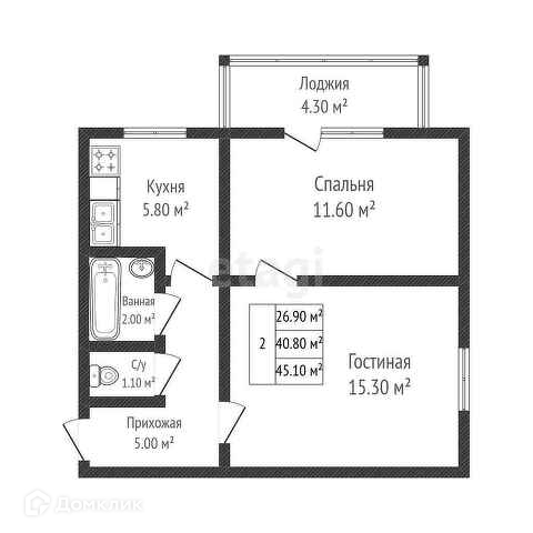Две комнаты: спальня и гостиная, а также кухня, раздельный санузел. Большущий застекленный балкон