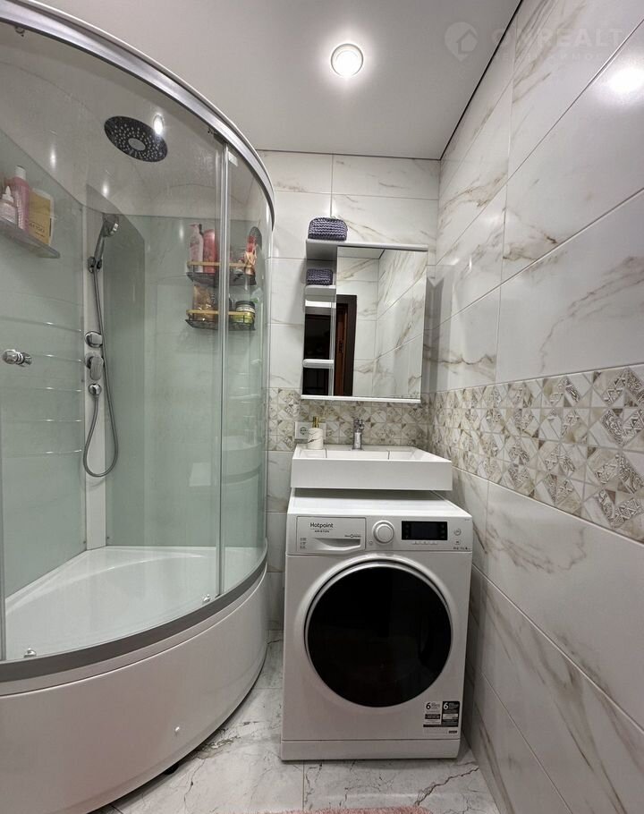 В Ванной комнате - стиральная машинка.