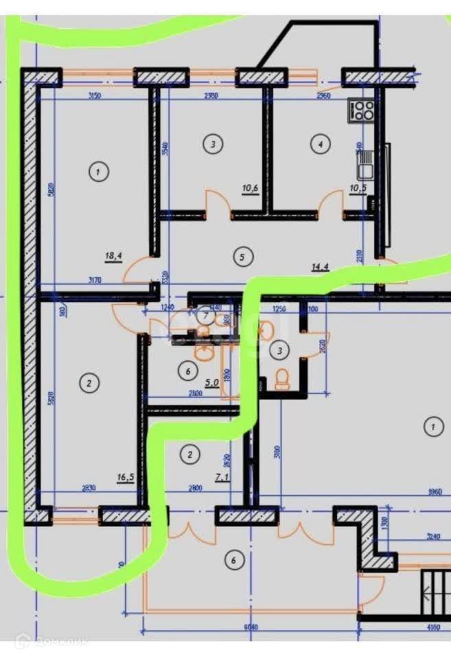 3-комнатная квартира, 77.1 м2, этаж 1 / 5, на продажу в посёлке городского типа Фёдоровский, улица Фёдорова, 7