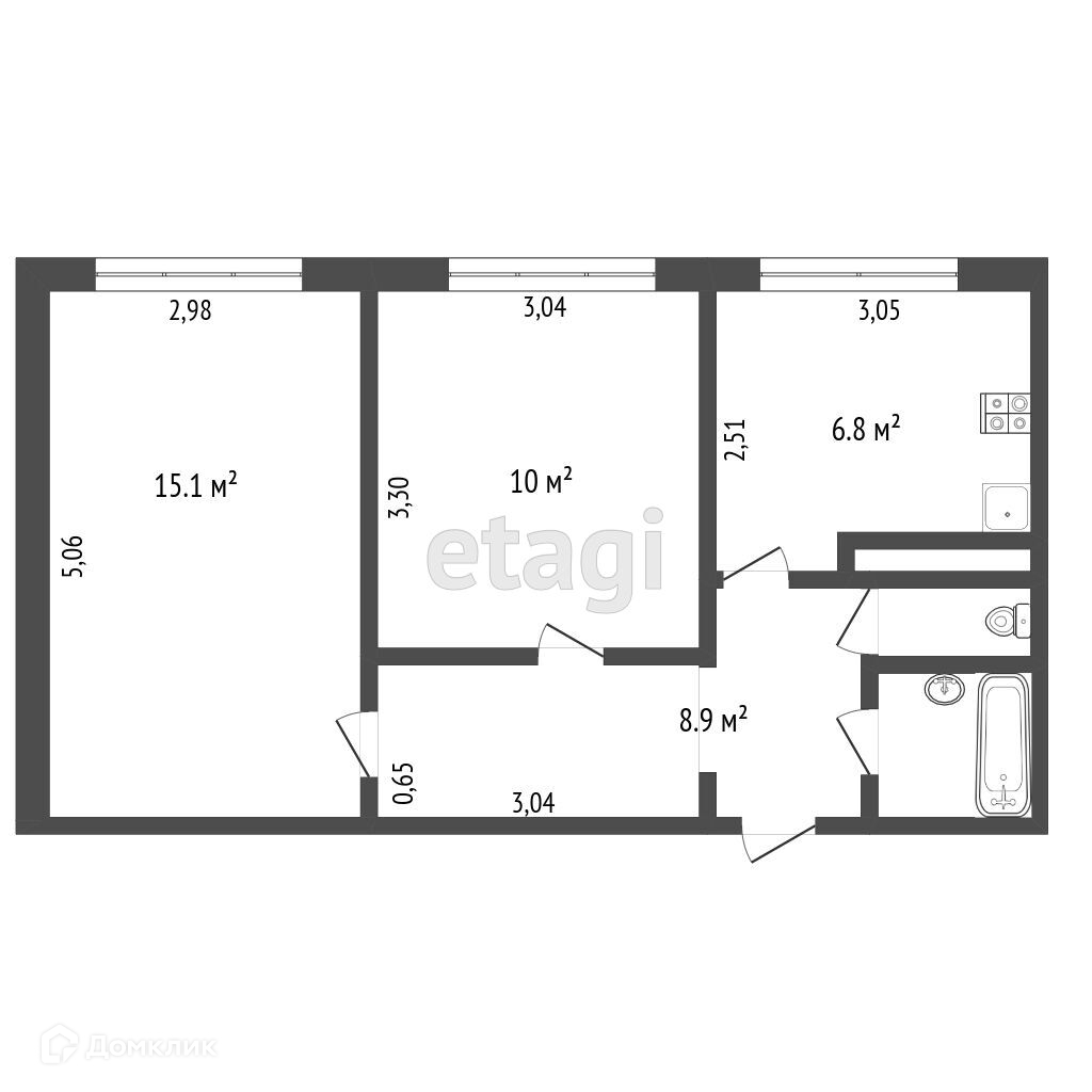 Общая площадь 45.4 м2