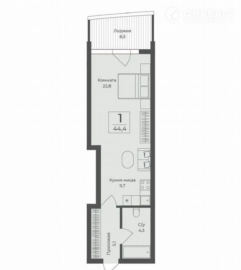 Балкон, лоджия 1 лоджия