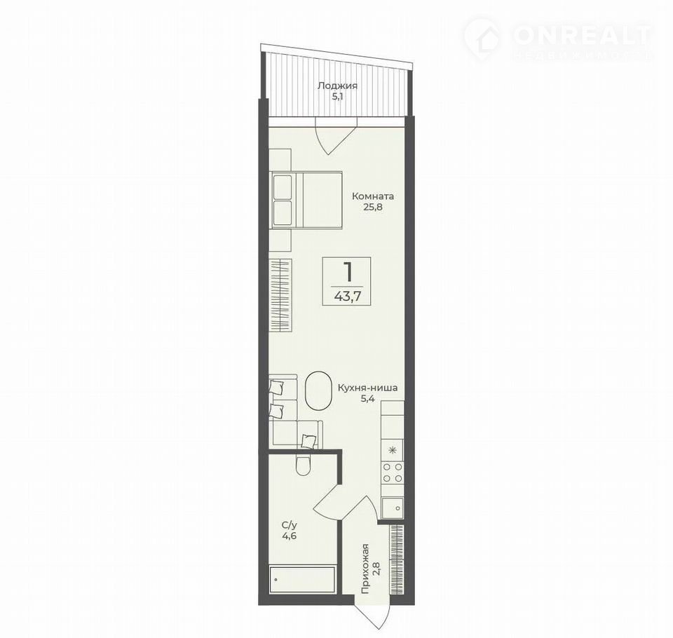 Балкон, лоджия 1 лоджия