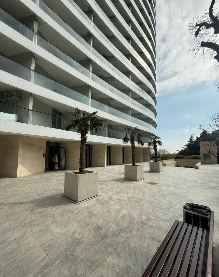 Общая площадь квартиры составляет 60,5кв. м. (вместе с террасой) и она расположена на 12 этаже 20-этажного здания. Уютная планировка включает в себя одну спальню, один современный санузел, просторную кухню-студию и коридор, а также два балкона, с которых открывается захватывающий вид на море и горы.