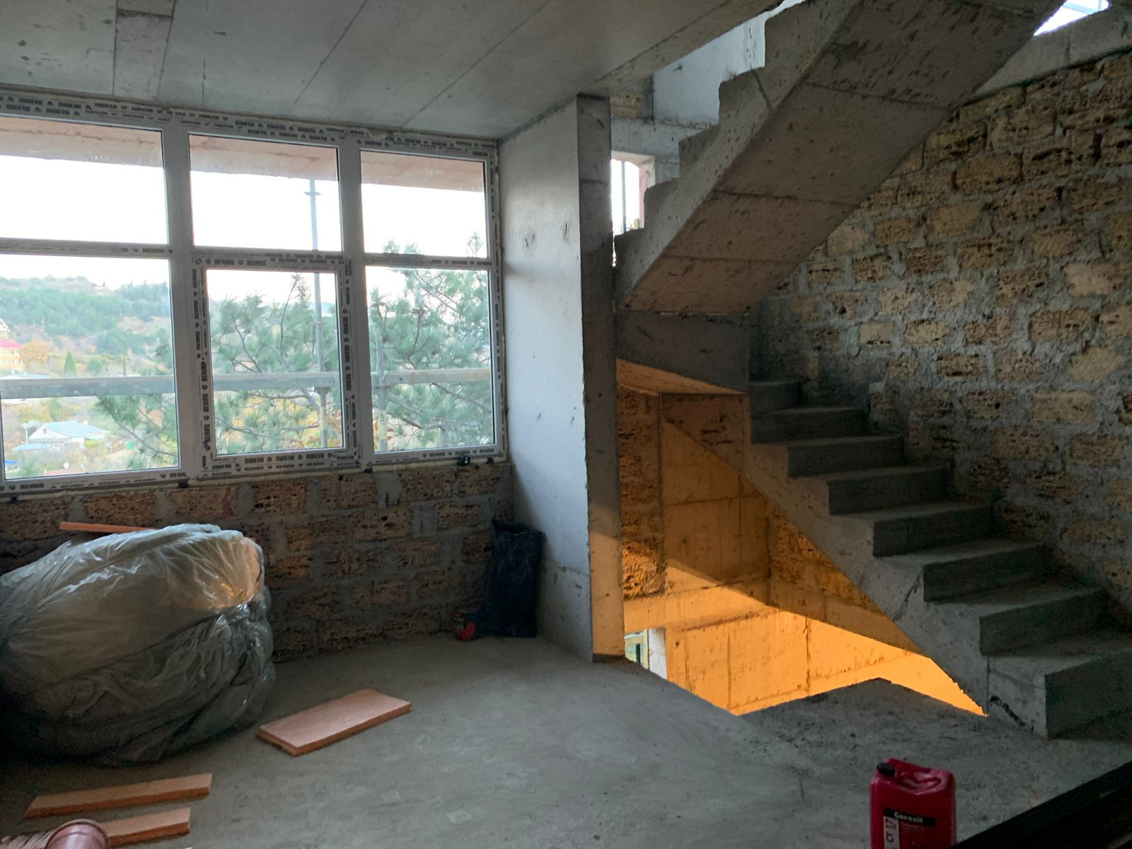 Находится на нулевом уровне. Вход в дом на первый этаж. В помещении можно обустроить прихожую, санузел, котельную, кухню.