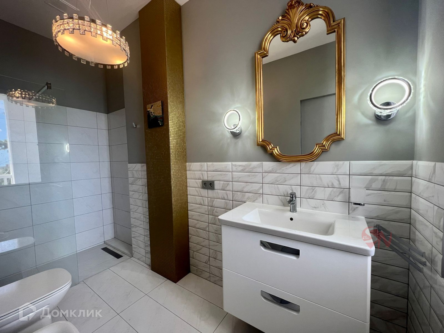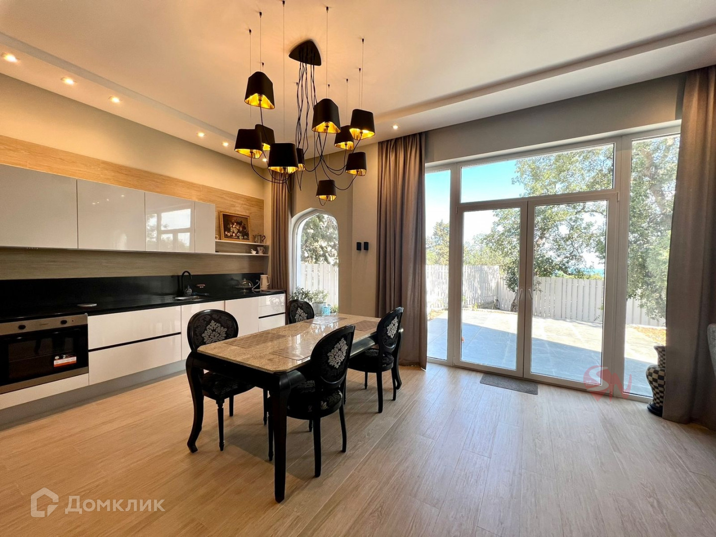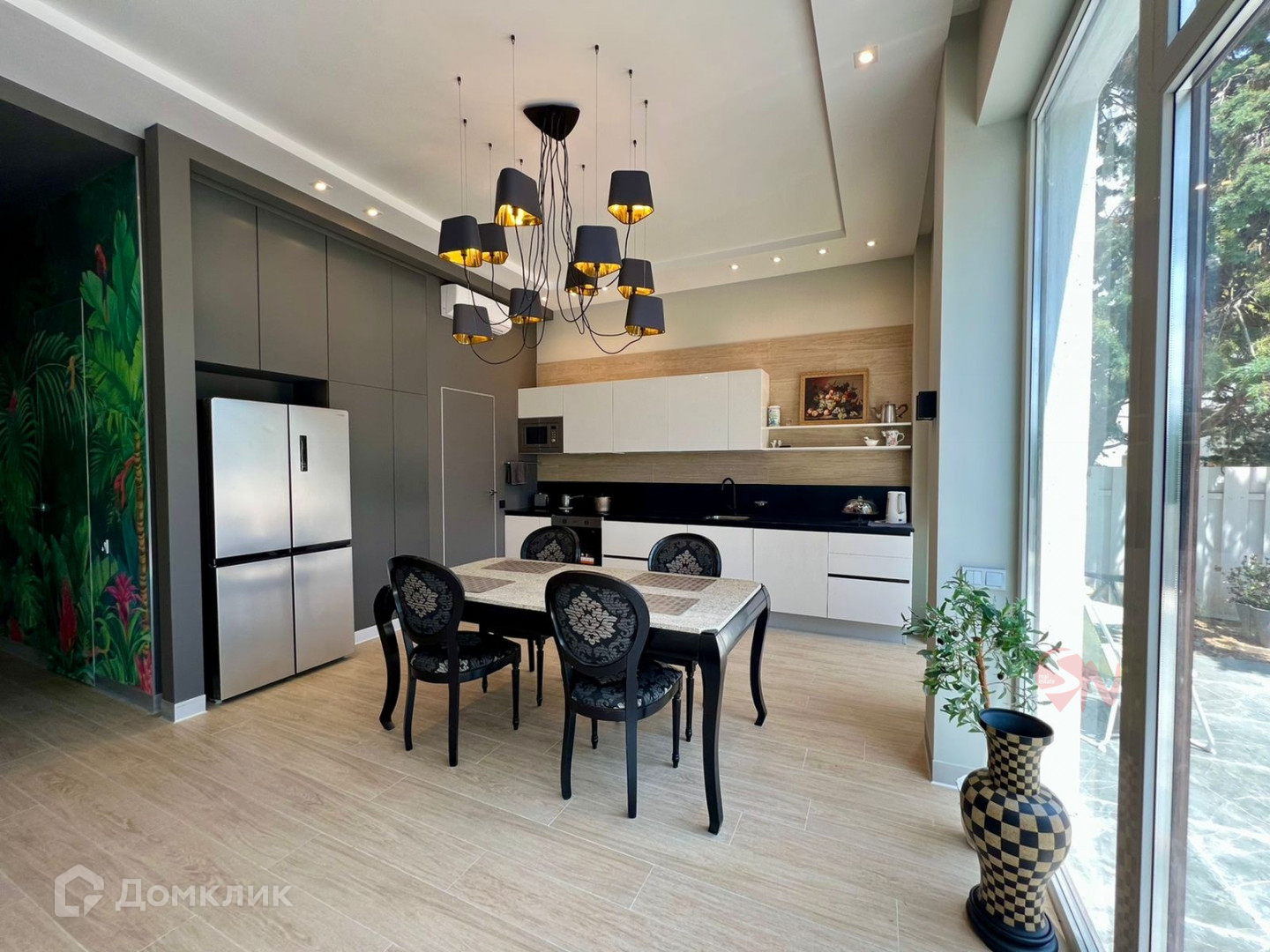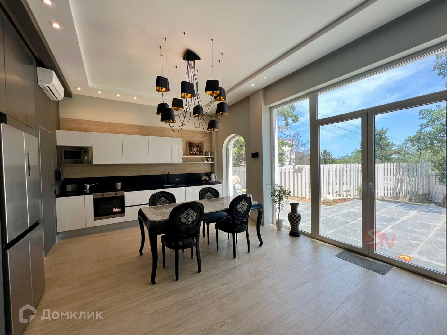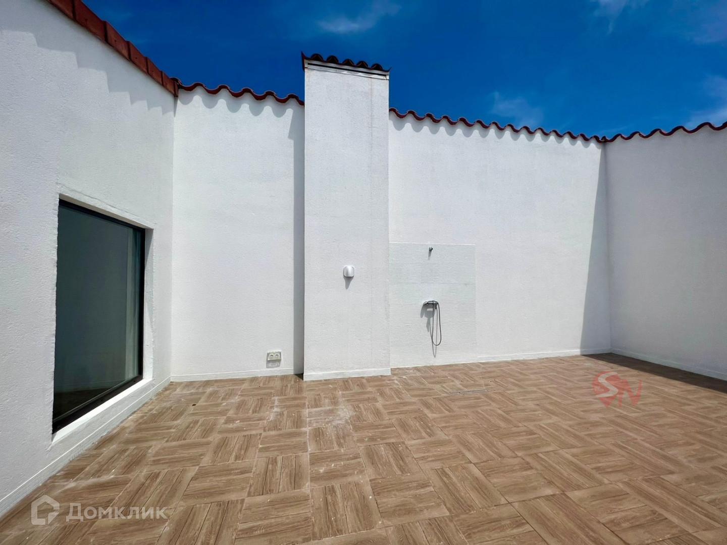 Площадь 250 кв.м., два этажа, мансарда и открытая терраса - солярий. Кухня- гостиная, 5 комнат, 4 санузла.
