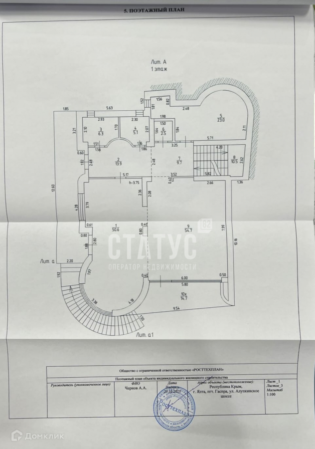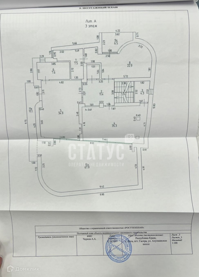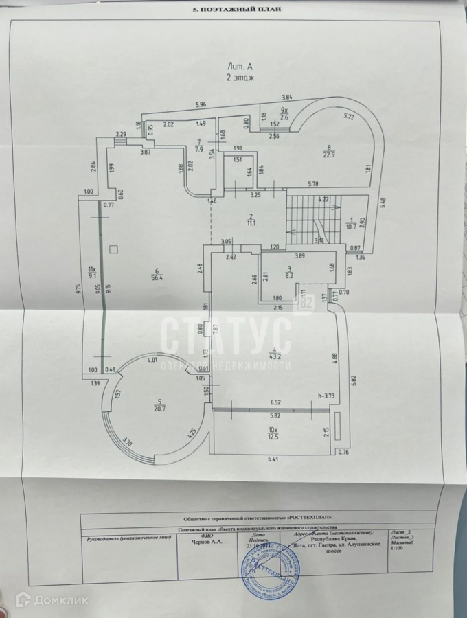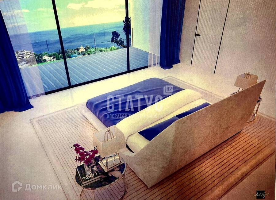 Общее количество жилых комнат – 9, в каждой спальной комнате предусмотрен индивидуальный сан.узел, балконы. Несколько больших террас с видом на море, дворец Ласточкино гнездо и горы Ай-Петри.