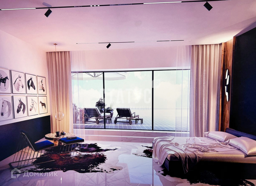 Дизайн-проект на дом и участок предусматривает бассейн на открытом воздухе с панорамным видом на море, спортивный зал. В фоторяде приведены несколько примеров готового варианта комнат.