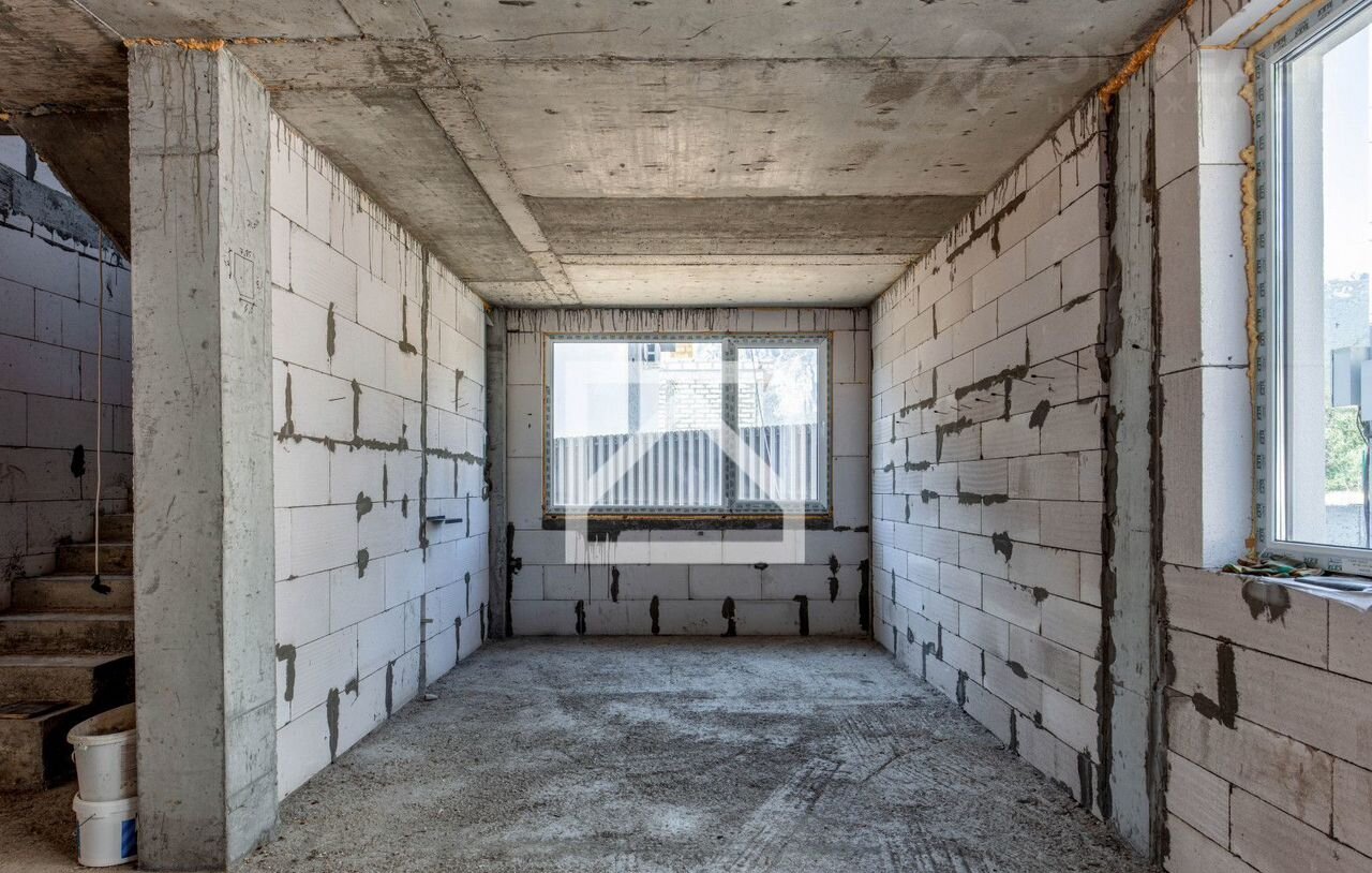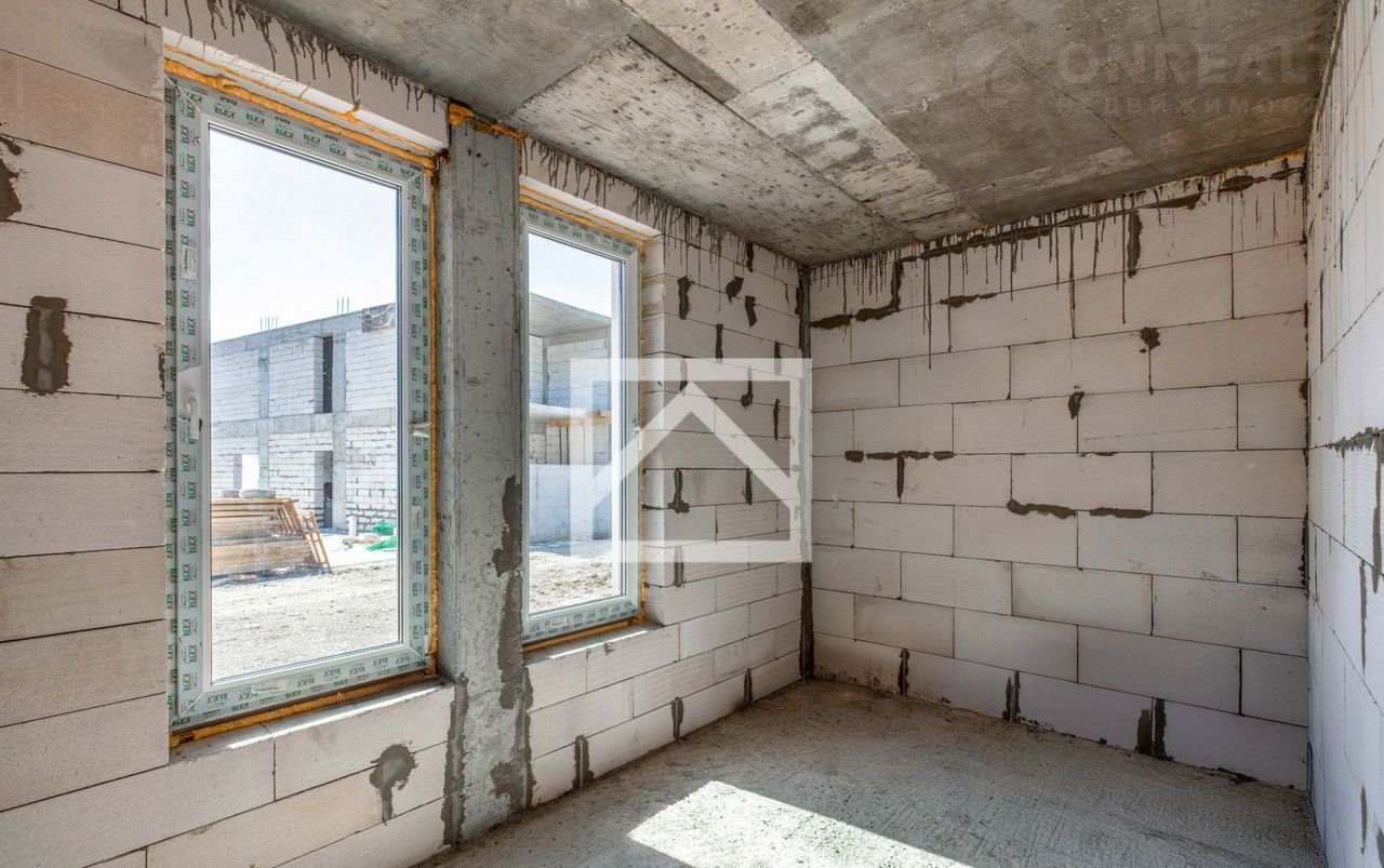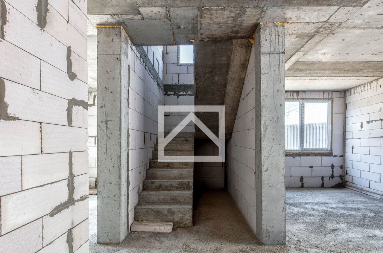 Каркас дома выполнен из прочного железобетона, что обеспечивает надёжность и долговечность конструкции. Заполнение стен из газоблока — материала, сочетающего лёгкость и высокую теплоизоляцию.