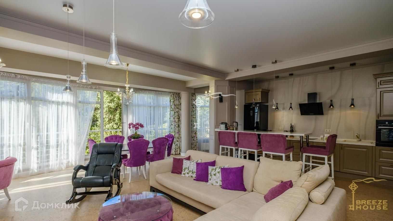 В квартире выполнен дизайнерский ремонт с использованием качественных материалов. Укомплектована стильной мебелью и техникой от мировых производителей.