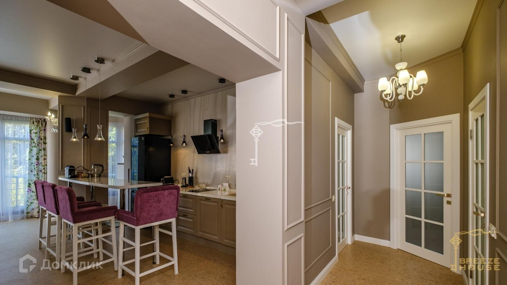 Квартиру украшают необычайно красивые итальянские люстры и бра.