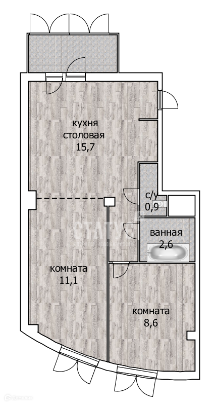 Балкон, лоджия 1 балкон