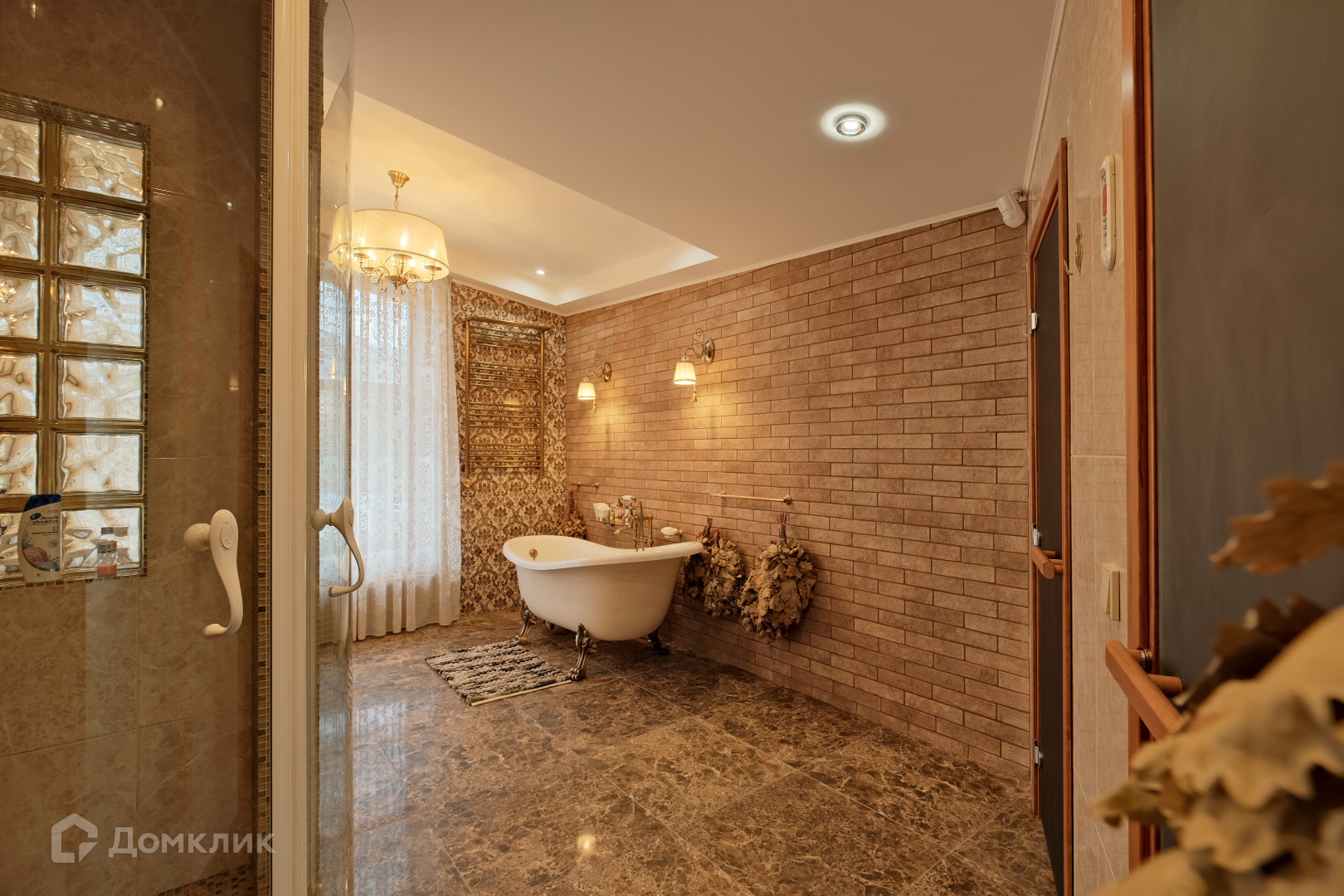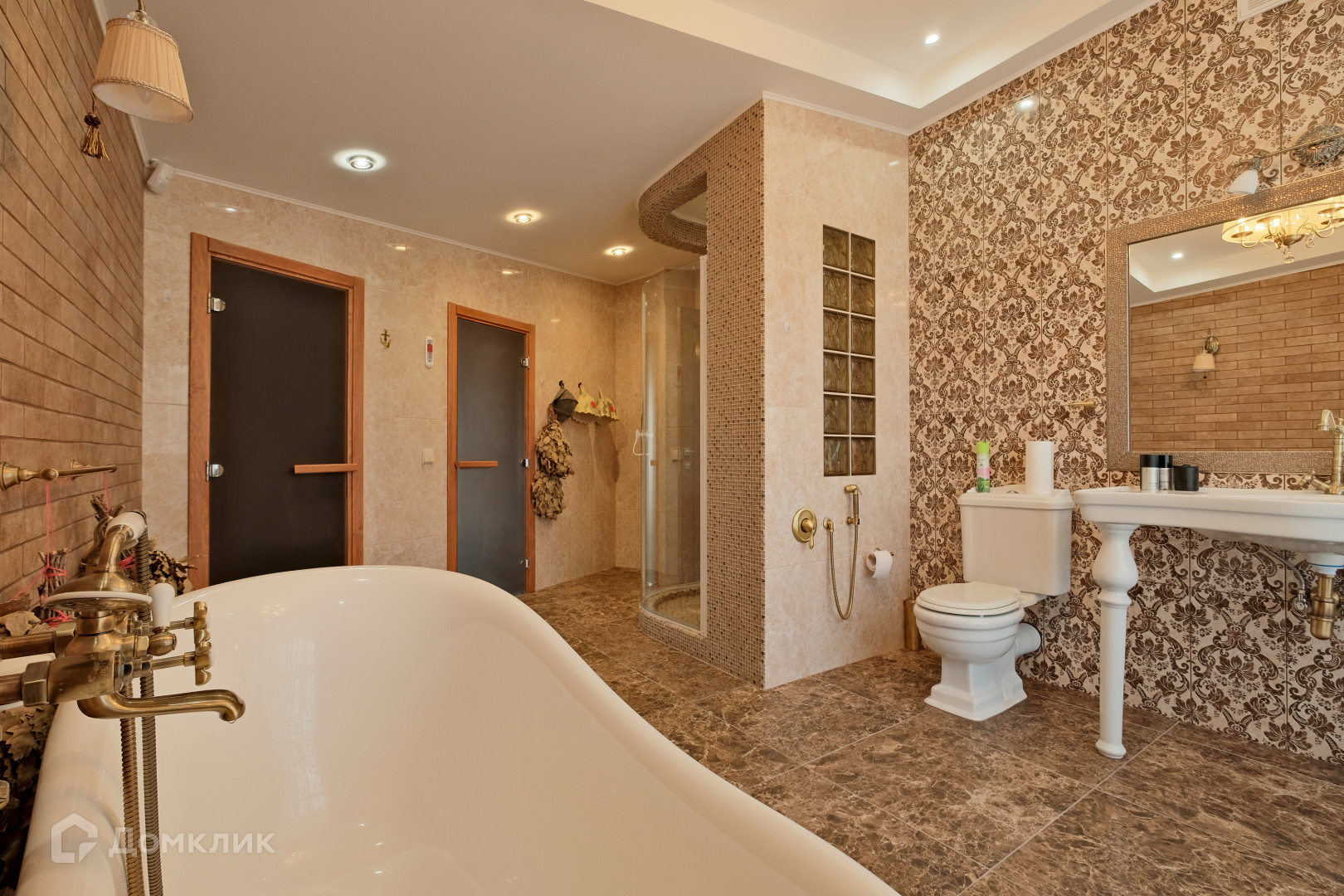 -большая ванная комната с финской сауной,