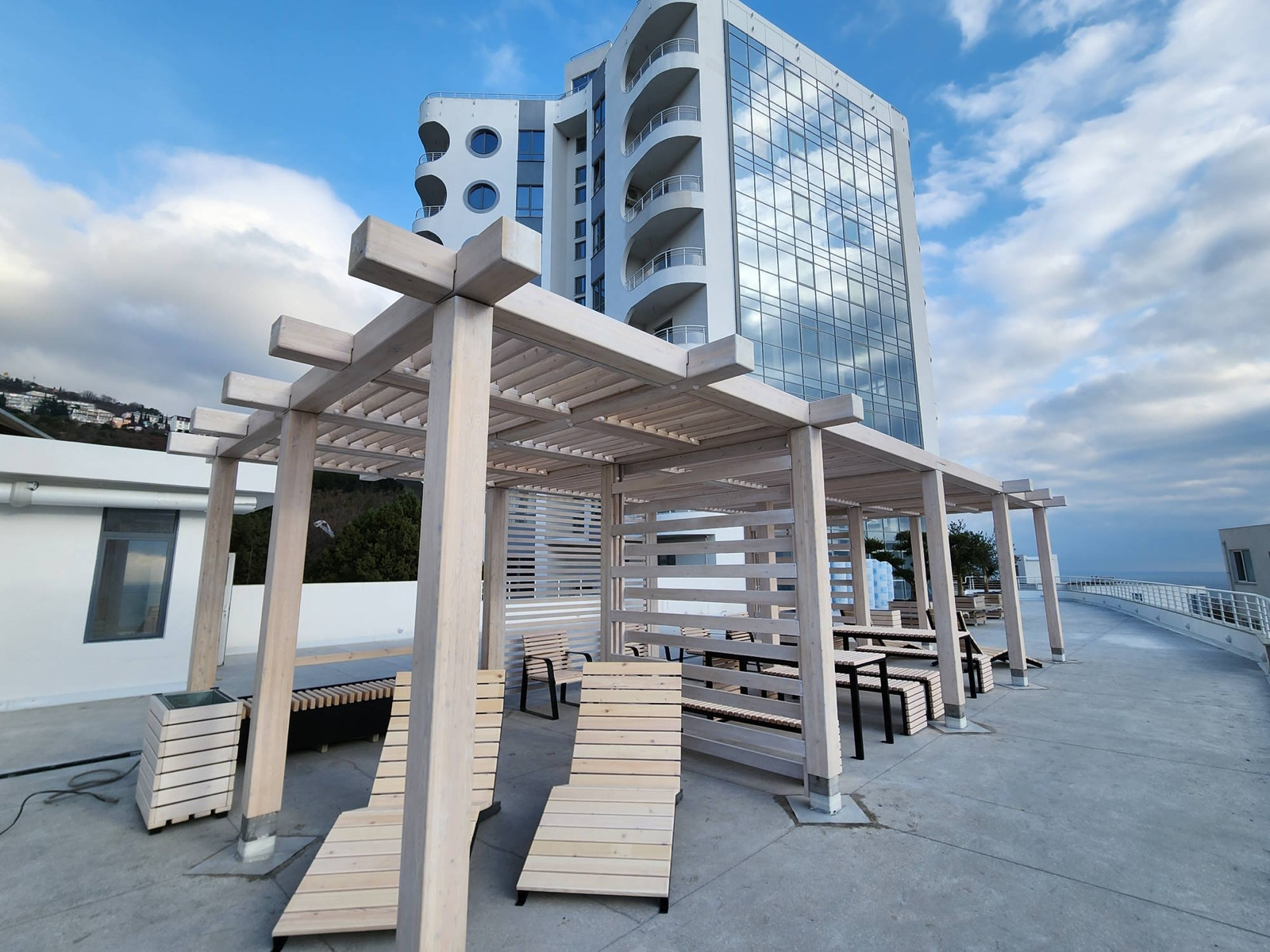 3. Инфраструктура комплекса включает тренажерный зал, детскую площадку, парковку, эксплуатируемые крыши с видом на море, горы, Ялту, Симеиз, большую видовую террасу. Также к инфраструктуре добавиться открытый бассейн (2025 год), банный комплекс(2025 год).