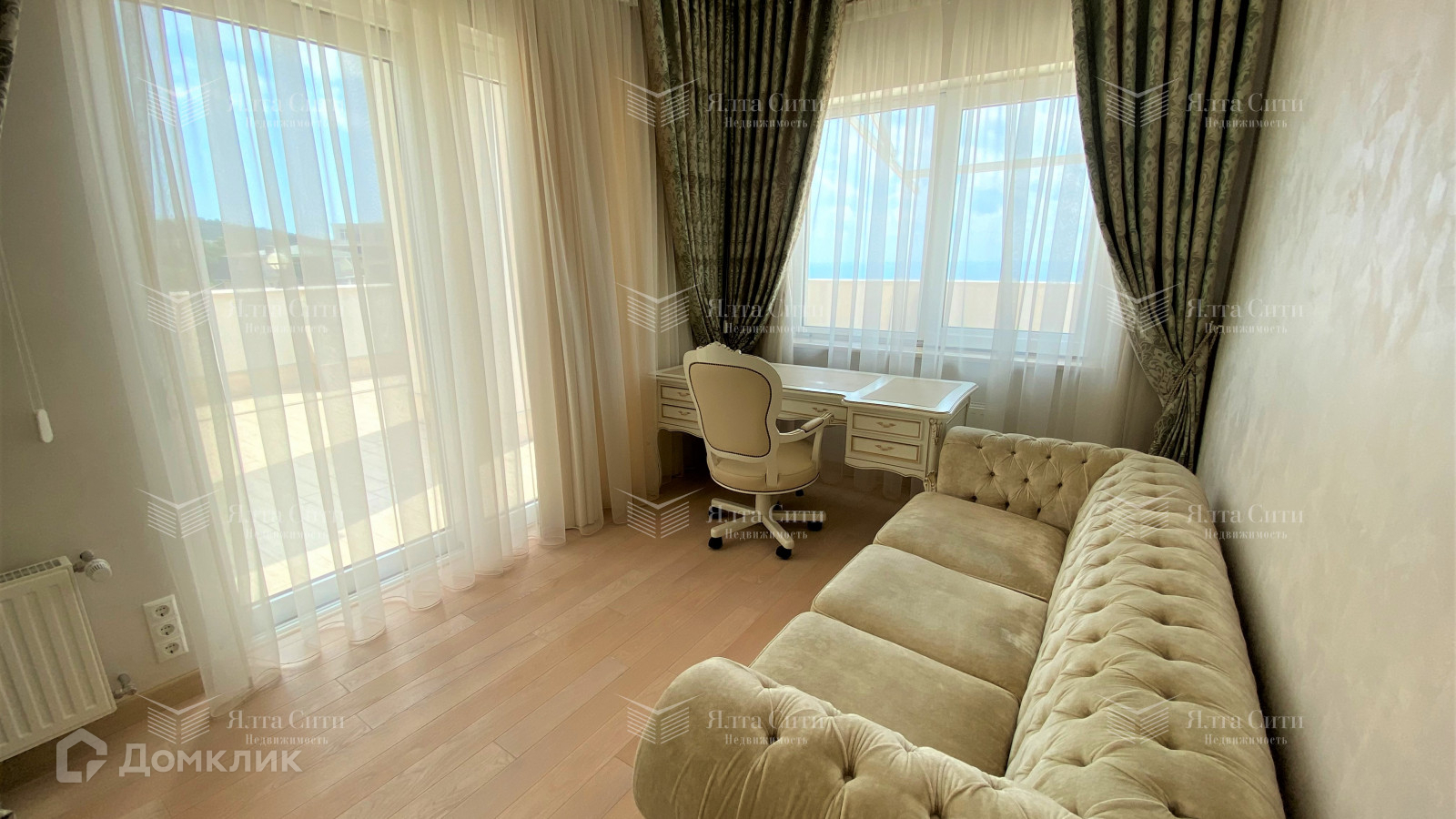 ID:21369. Предлагаем вашему вниманию роскошный пентхаус расположенный в зеленом уголке Гаспры в жилом комплексе «Александрия». Жизнь в пентхаусе таит особое очарование. Вид из окна окрыляет. Пентхаус позволяет «распахнуть окна» для доступа света и контакта с внешней средой. Устав от стандартного жилья, жители воспринимают открытую планировку и просторную террасу, как глоток свободы. Словно ты наедине с природой. Фактическая площадь пентхауса с террасой и балконом - 281,4 кв.м, общая площадью- 201,8 кв.м., три отдельные комнаты: зал - 37 кв.м, спальня- 24 кв.м, кабинет- 13 кв.м. Планировка пентхауса подразумевает: прихожую, гостевой санузел, просторный зал с выходом на открытый балкон и открытую террасу по всему периметру квартиры, с одной стороны отрывается живописный вид на гору Ай-Петре, с другой на море, кухню, кабинет (с легкостью трансформируется в спальню), хозяйскую спальню с ванной на золотых ножках с выходом на открытую террасу. Высокие потолки, панорамные окна в пол, позволяют забыть о границе между внутренним и внешним миром. В Пентхаусе выполнен ремонт в классическом стиле на самом высшем уровне с использованием натуральных материалов (мрамор, травертин, паркет), итальянской мебели (Cavio,Castagna) и люстрами, техники (Miele, Liebherr, Mitsubish), сантехники (Villeroy@ Boch, Hippo). Благодаря сдержанной цветовой гамме и оригинальным деталям в пентхаусе царят уют и покой. Это место создано для отдыха и наслаждения жизнью. Приятным бонусом к покупке будет парковочное место.