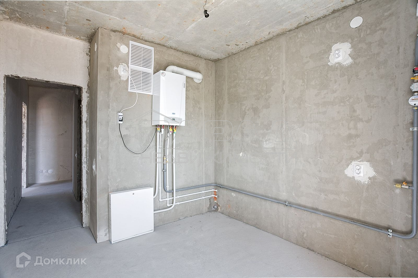 Отопление и горячая вода: итальянский двухконтурный газовый котел Baxi. Отделка white box: разводка коммуникаций, стяжка пола, штукатурка стен, установлены все счетчики, радиаторы, выключатели, розетки, решетки вентиляции, дверной звонок,
