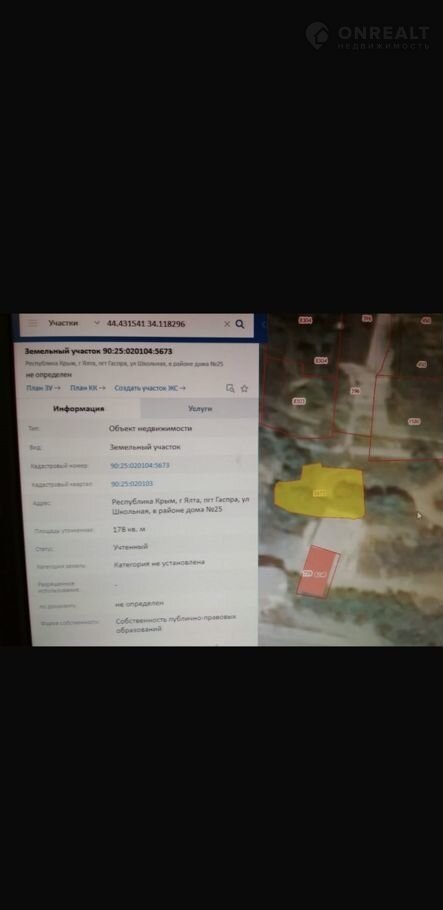 Участок под ИЖС, 1.8 сот. на продажу в посёлке городского типа Гаспра, Алупкинское шоссе