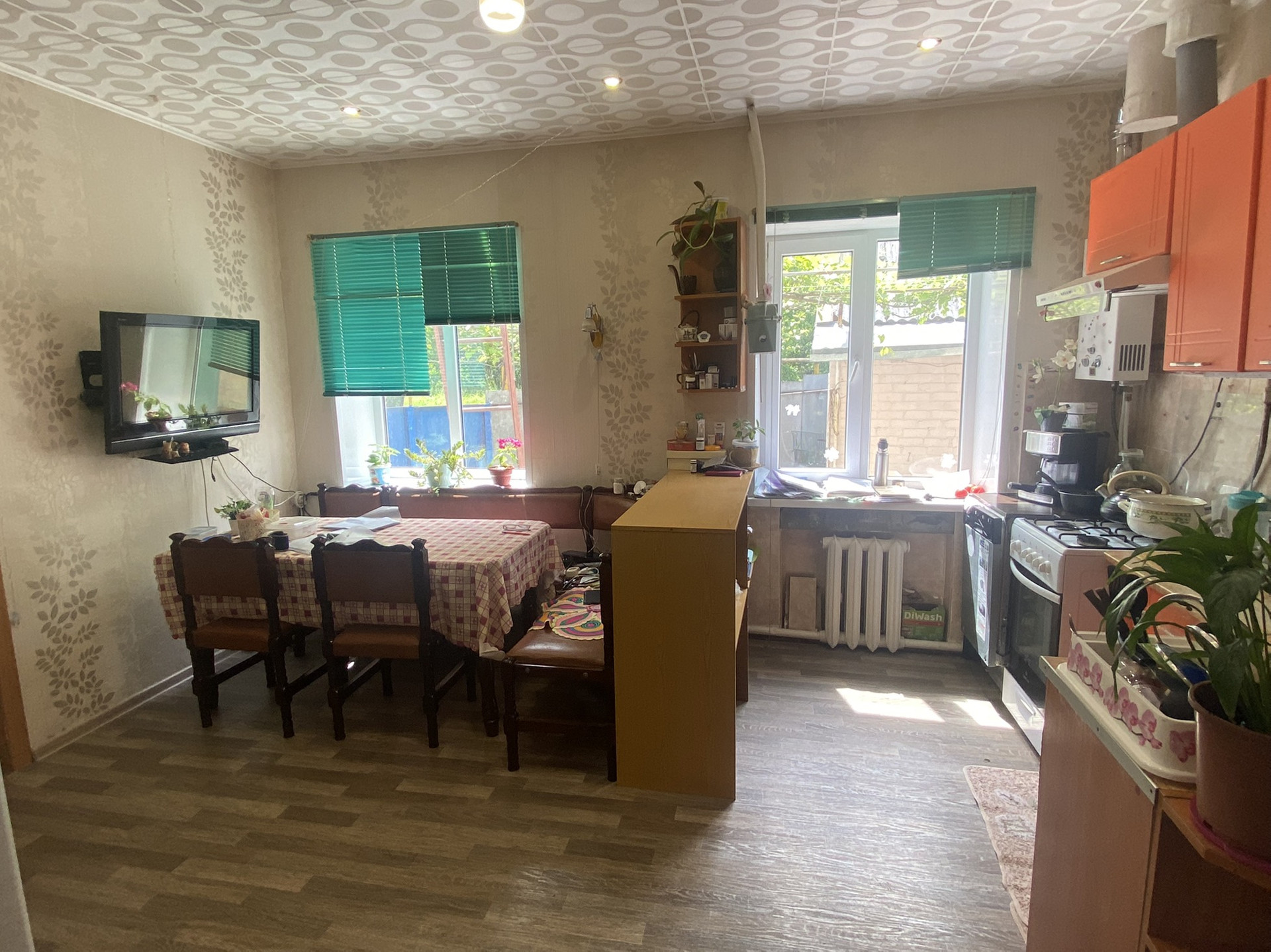 3 комнаты, газ-котёл, ванна в доме, туалет на улице( есть место для сан узла в доме), пластиковые окна, земельный участок 4 сотки, хоз постройки, сарай, подвал, все коммуникации, рядом рынок, школа, садик и тд, документы готовы для регистрации!