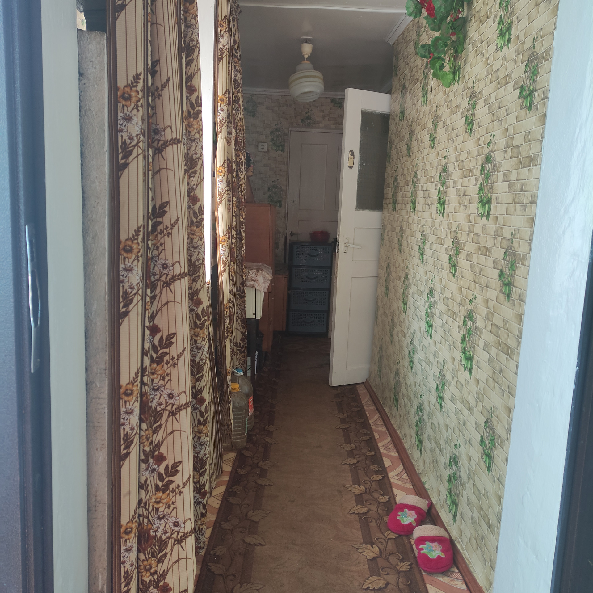 3 жилых комнаты, большой зал, кухня 10 кв. м.,ванная комната,душевая кабинка, сан. узел, газовое отопление, центральная канализация, вода. Стены кирпичные, фундамент камень.