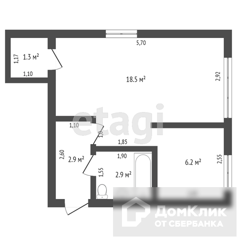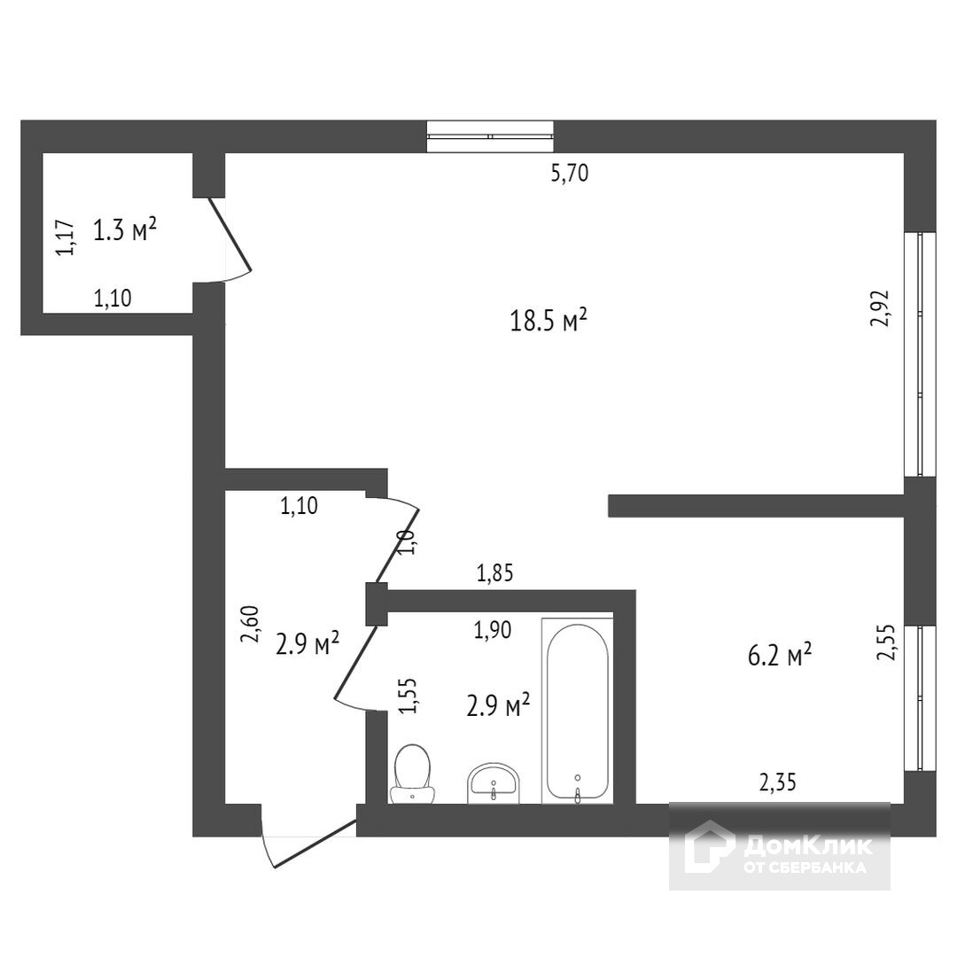 Общая площадь 29.1 м2