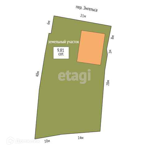 Площадь участка 9.8 сот.