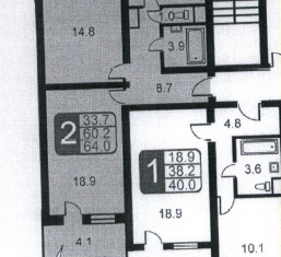 Общая площадь: 40.8 м2