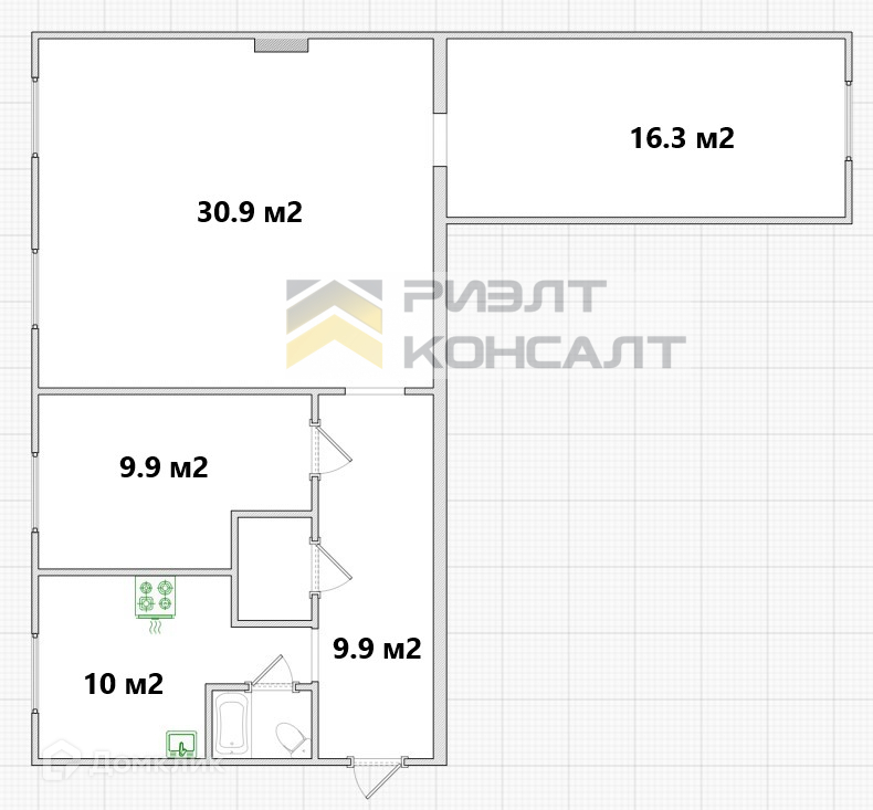 Жилая площадь 57.1 м2