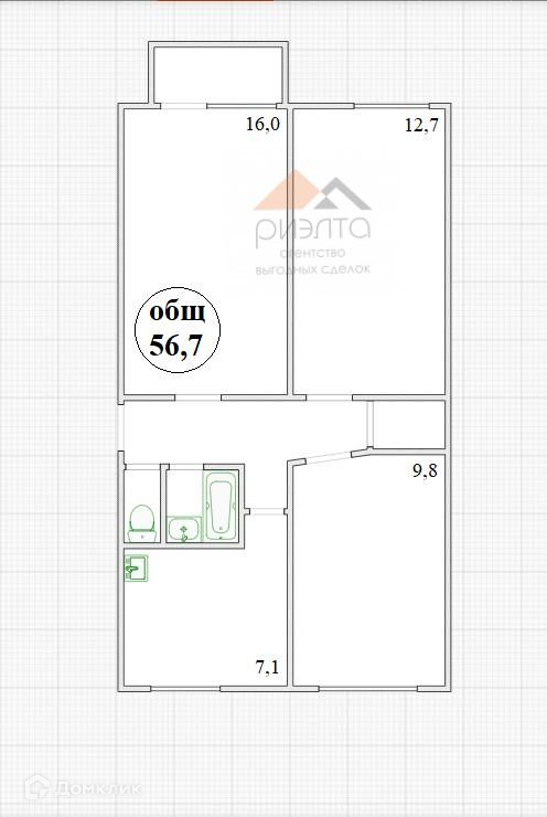 Общая площадь 56.7 м2