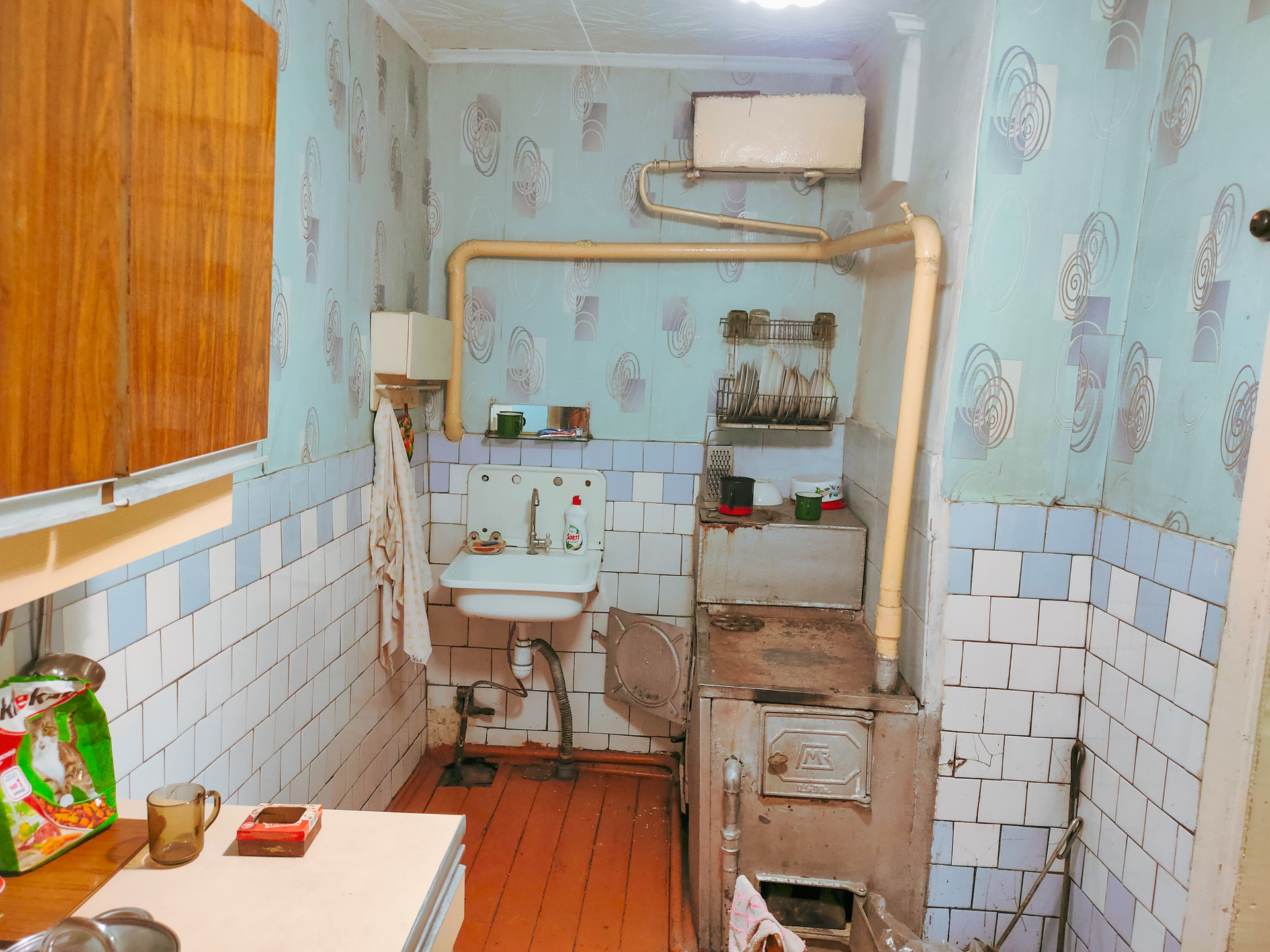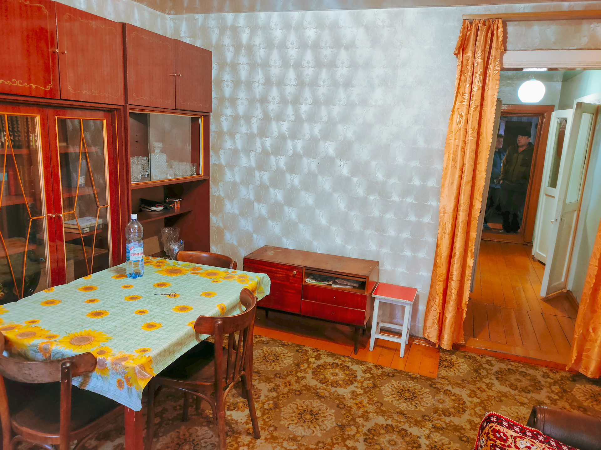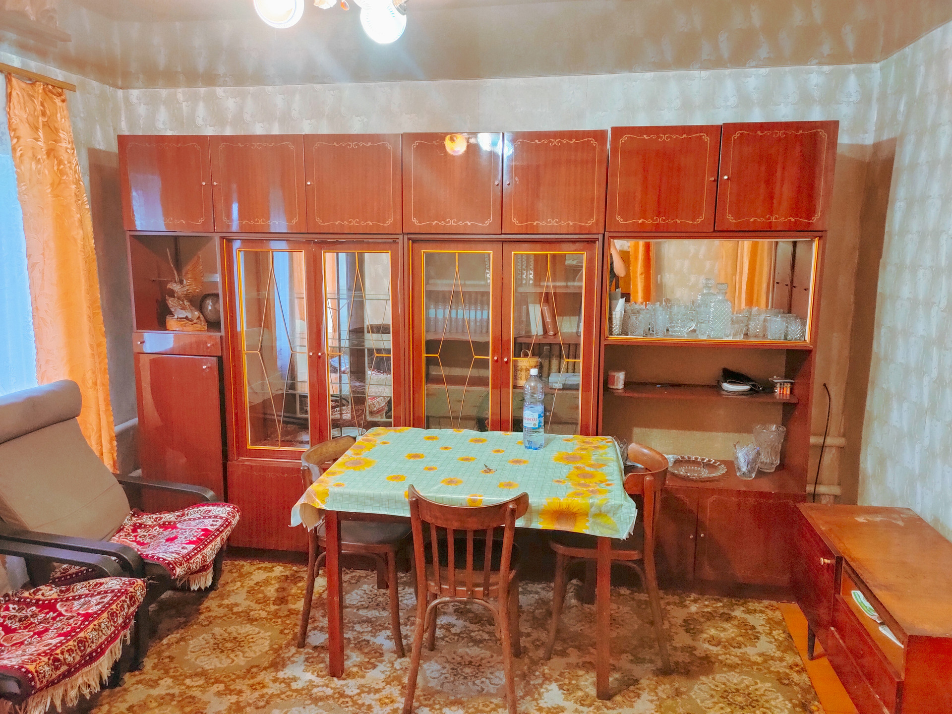 • S=68,4 м². Брусовой дом. Теплый. Косметический ремонт. Окна ПВХ. Полы деревянные, окрашенные. Водяное отопление от печи. Вода и слив доме. Стены ровные. Потолки натяжные.Установлены межкомнатные двери.