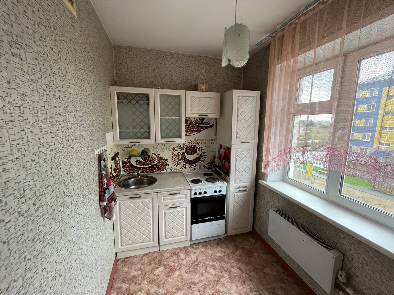 Квартира, светлая, теплая - солнечная сторона, в окно хорошо видно парковку и детскую площадку + балкон (возможно остеклить).