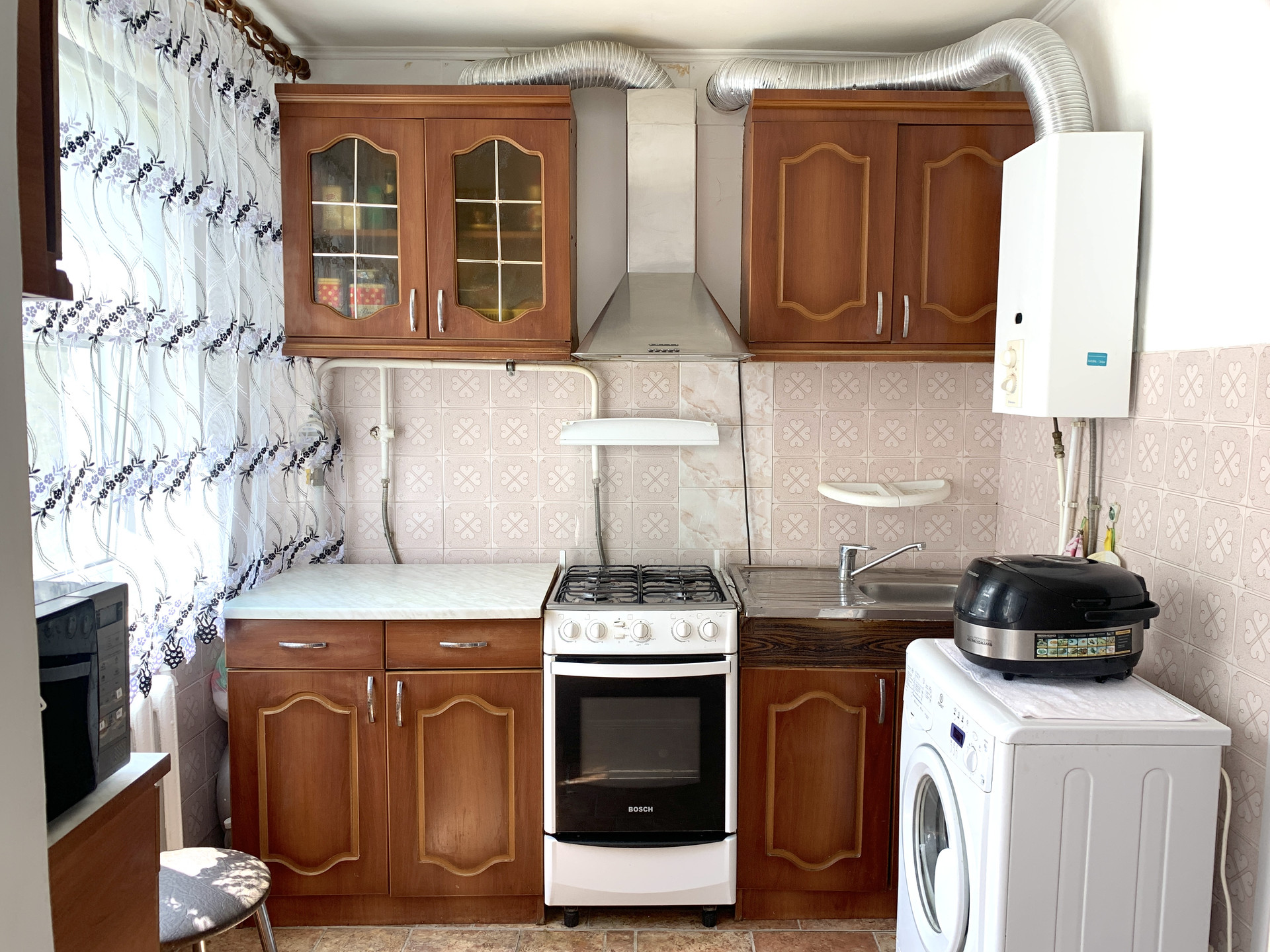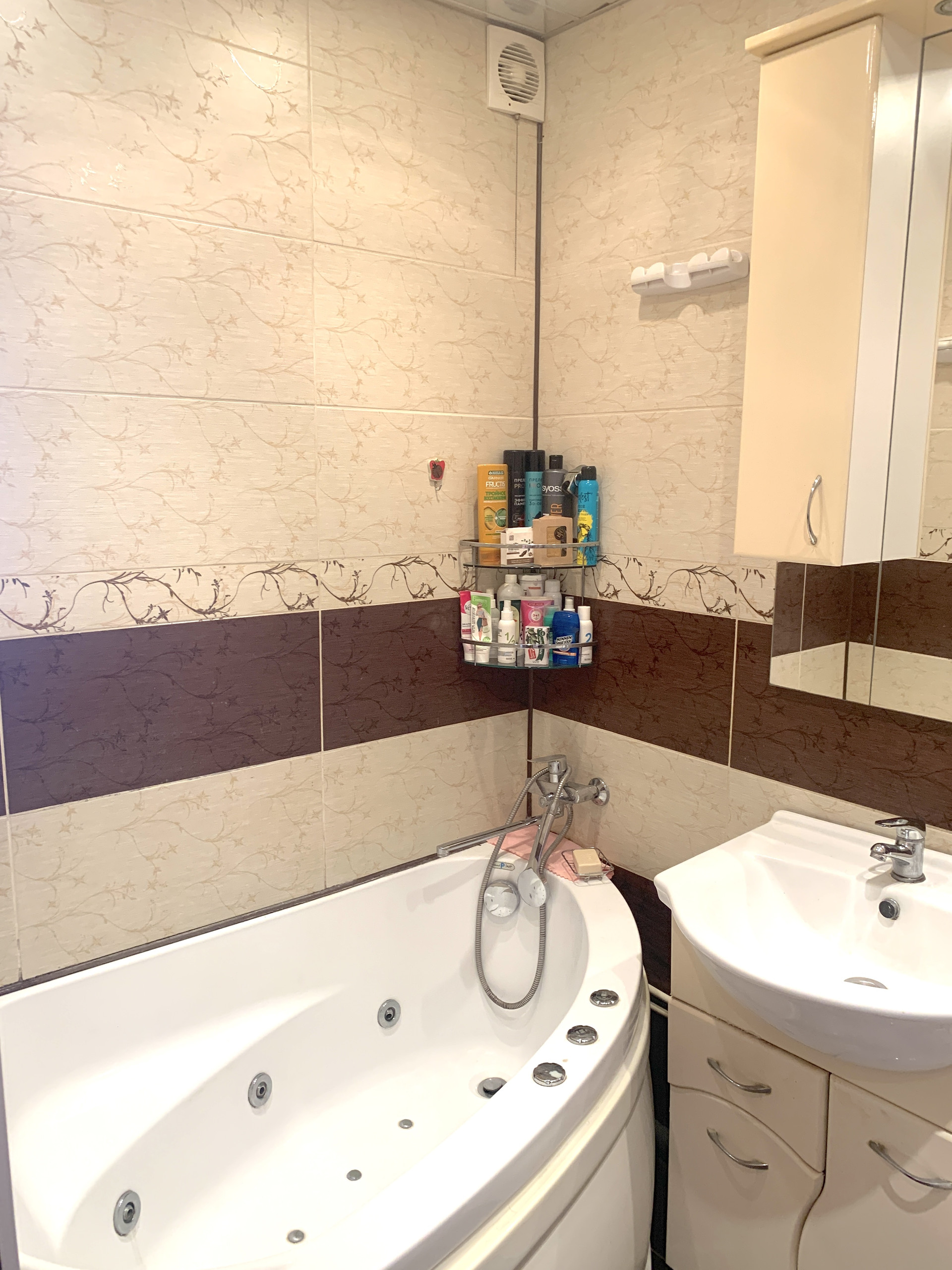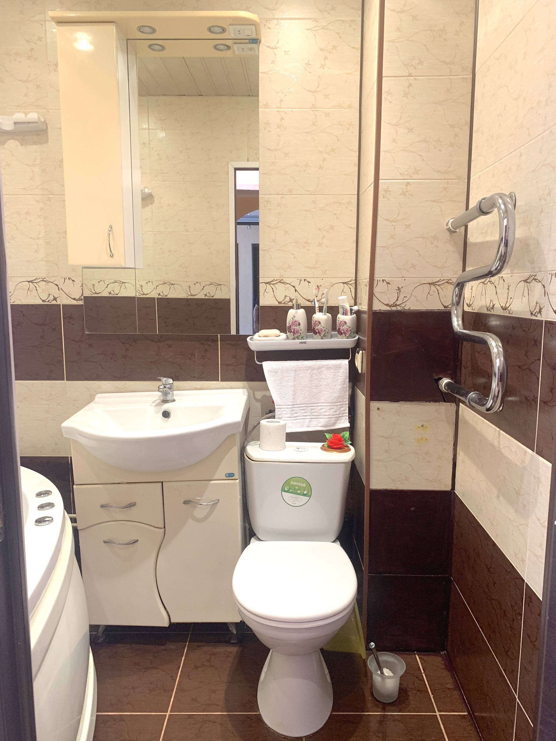 - Совмещённый санузел в кафеле.