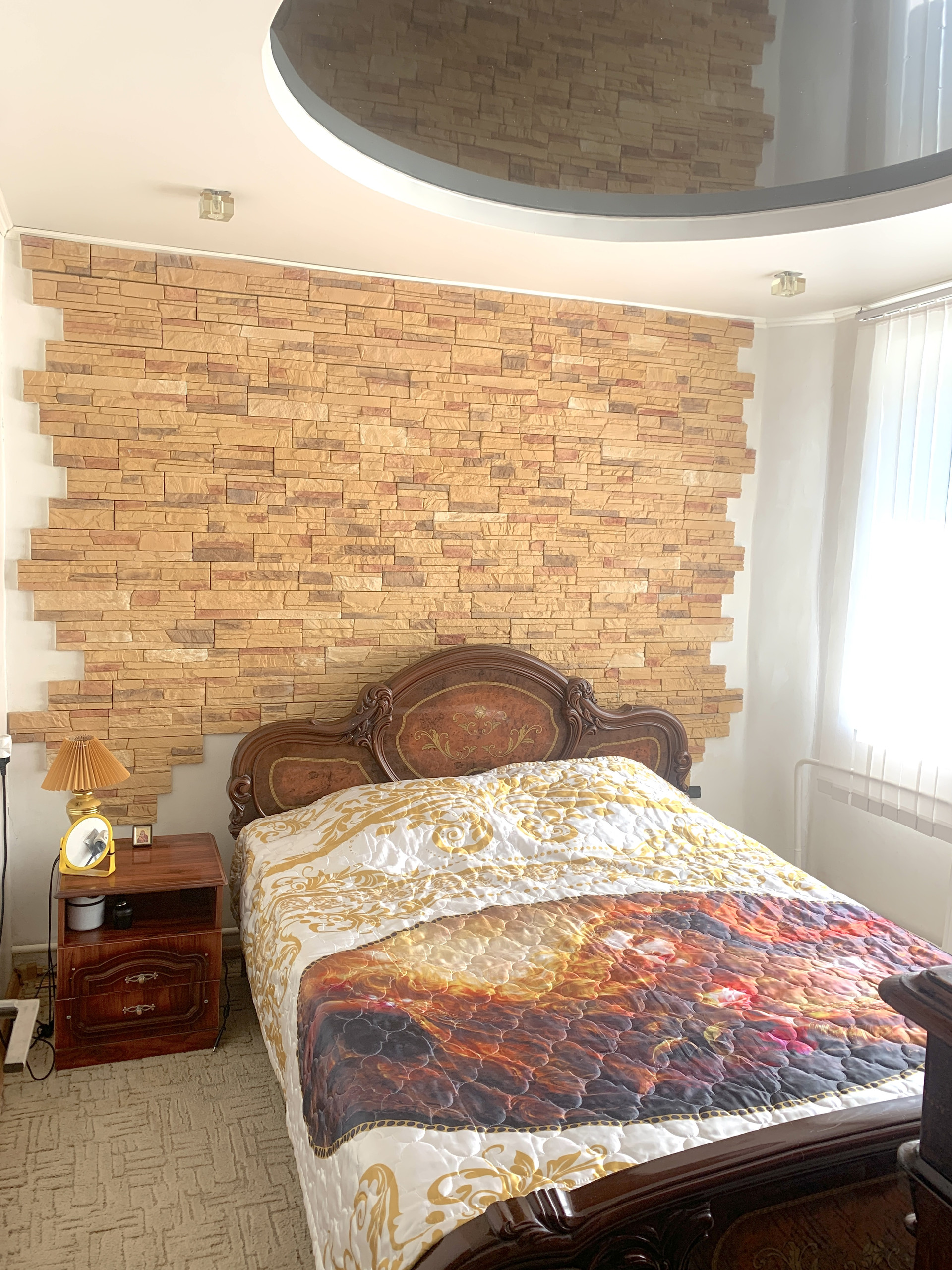 - Большой трёх створчатый встроенный шкаф купе с дополнительным освещением внутри.