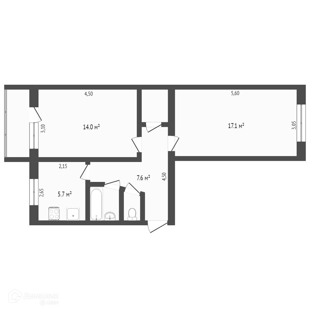 Площадь кухни 5.7 м2