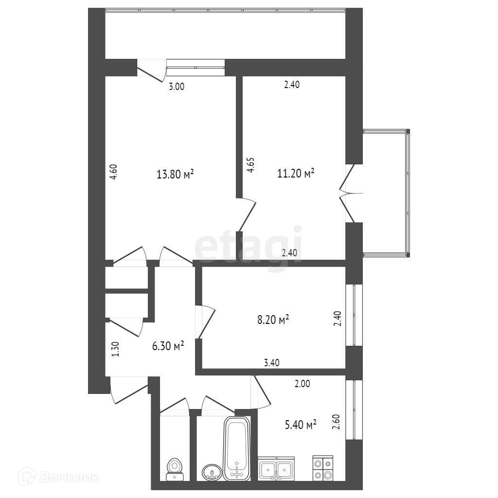 Общая площадь квартиры 53,27 кв.м., балкон, лоджия, санузел раздельный.