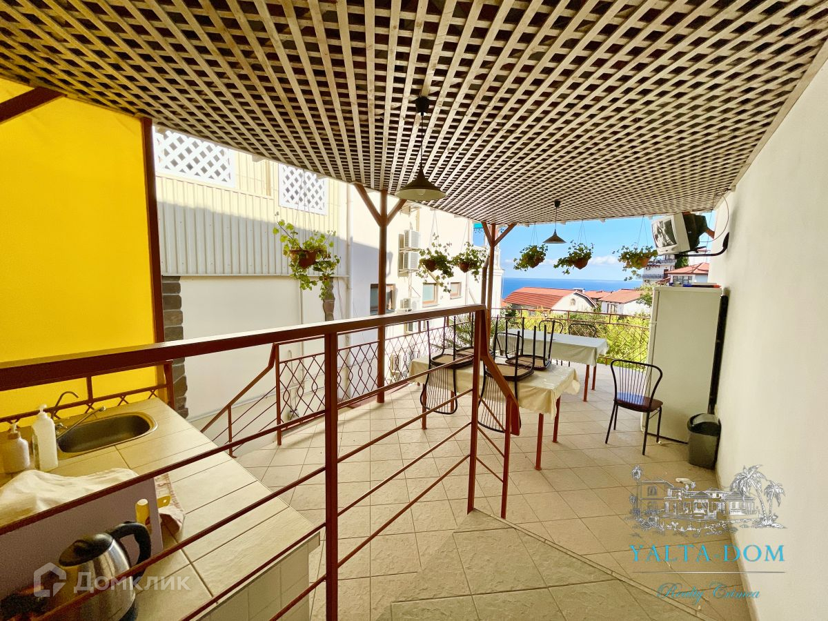 Предлагаем на продажу действующую гостиницу  расположенную в живописном уголке Южного берега Крыма, в поселке Гурзуф. Гостиничный комплекс 2005 года постройки общей площадью 363 м2, на земельном участке 4,2 сотки, включает в себя 8 номеров с выходом на видовые террасы и двухкомнатную квартиру. Номера укомплектованы всей необходимой мебелью и техникой для прекрасного отдыха. Во всех номерах есть балконы с видом на море, кондиционеры, санузлы, телевиденье, сейфы. Вся территория находится под видеонаблюдением. В дом заведены централизованные электричество-380 вольт, газ, вода, канализация, интернет. Отопление-двухконтурный газовый котел.