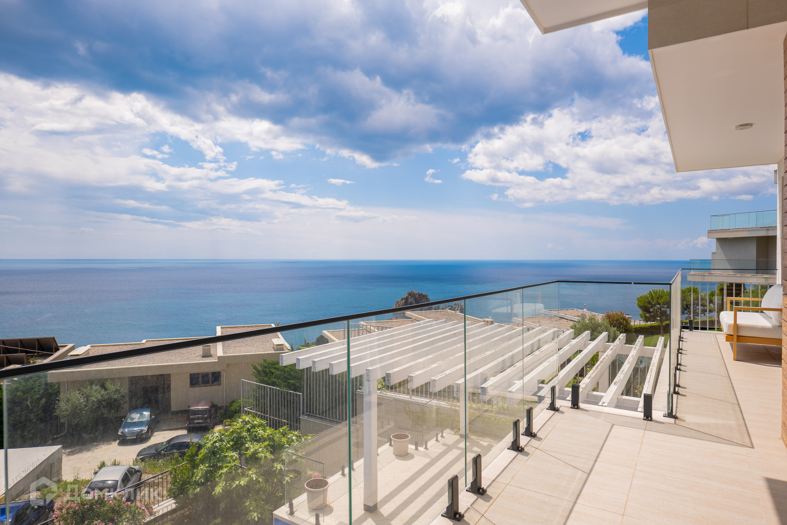 Все этажи и помещения имеют фасадное остекление, алюминиевые раздвижные системы, мультифункциональные стеклопакеты. Ограждение террас и балконов выполнено из каленого стекла.