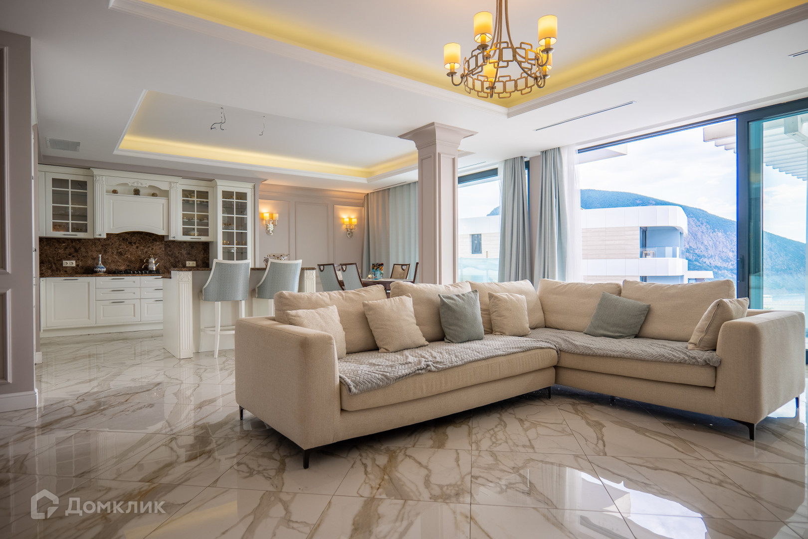 -просторная кухня-гостиная со столовой зоной,