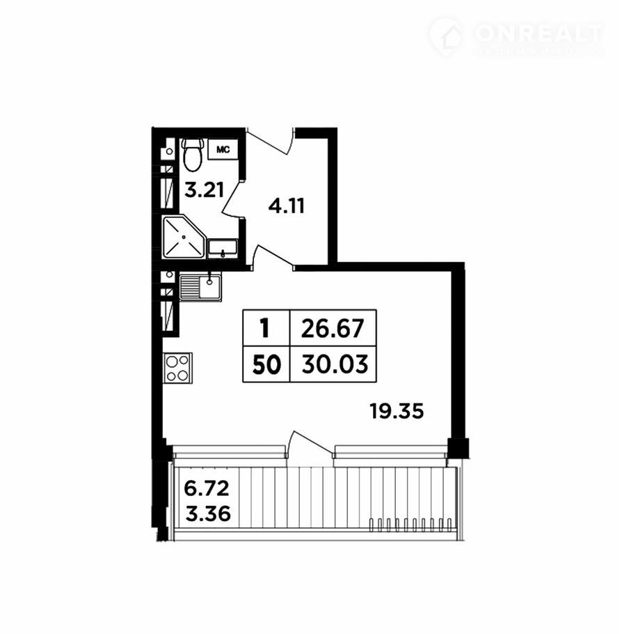 Балкон, лоджия 1 балкон