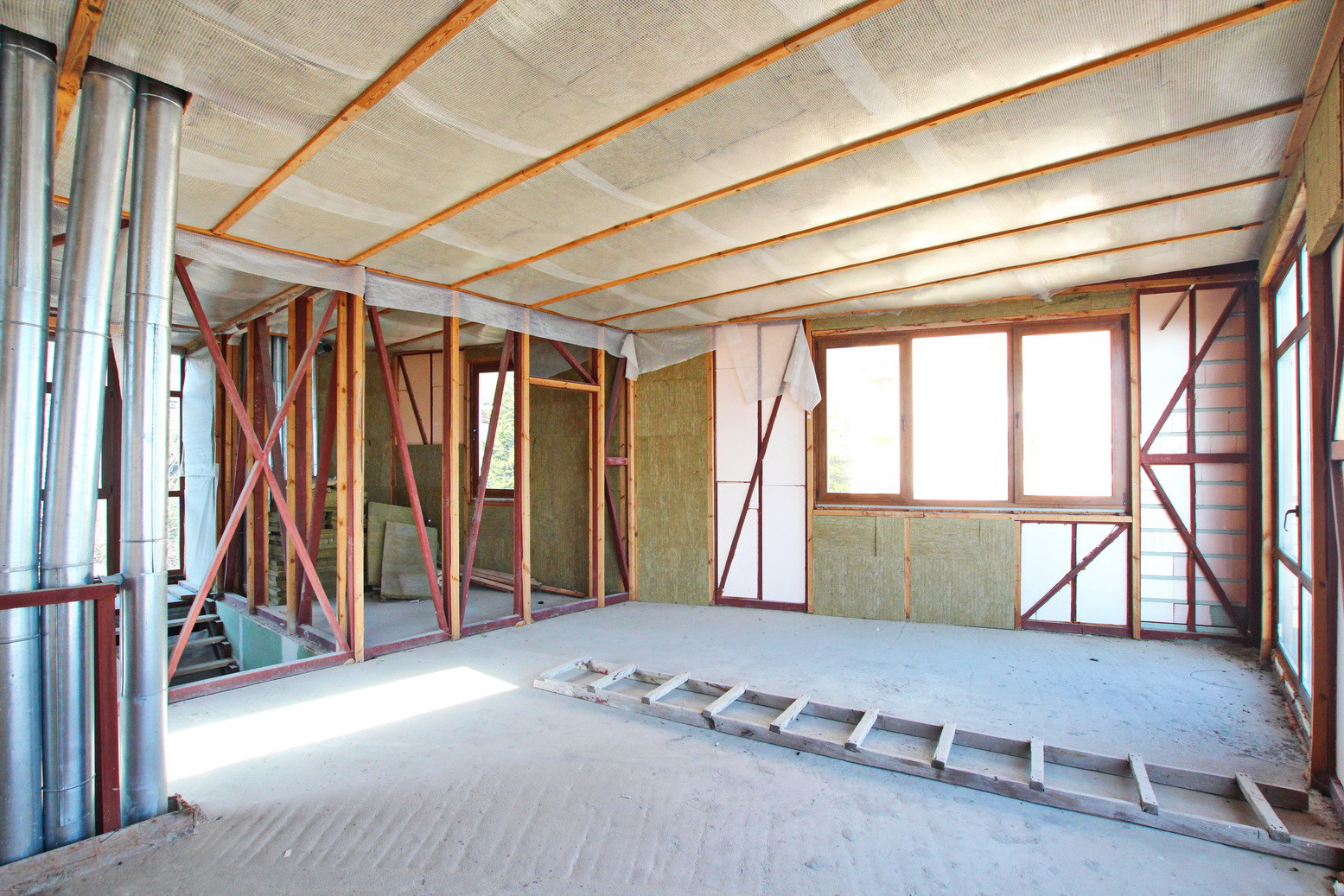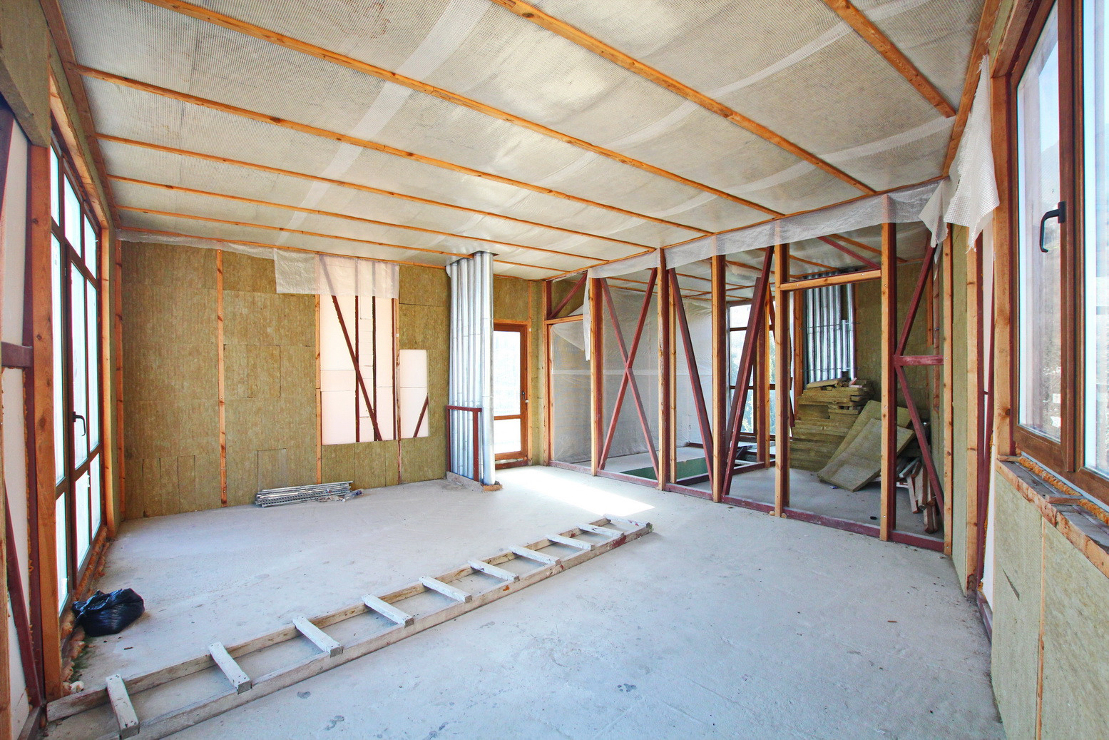 Планировка и расположение окон позволяют обустроить 2-3 спальни, 2 ванных комнаты, просторную гостиную и кухню столовую.
