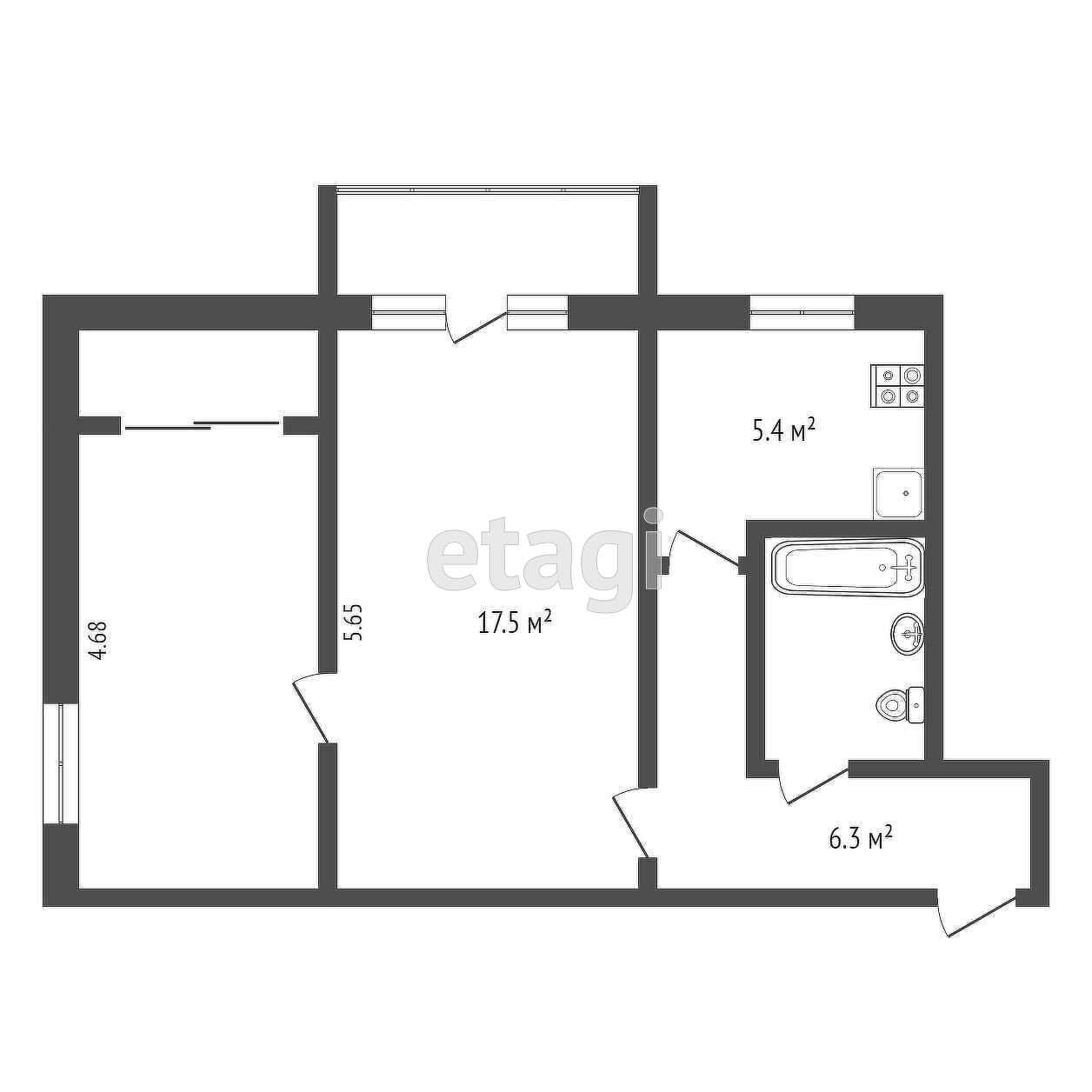 Общая площадь 47.3 м2