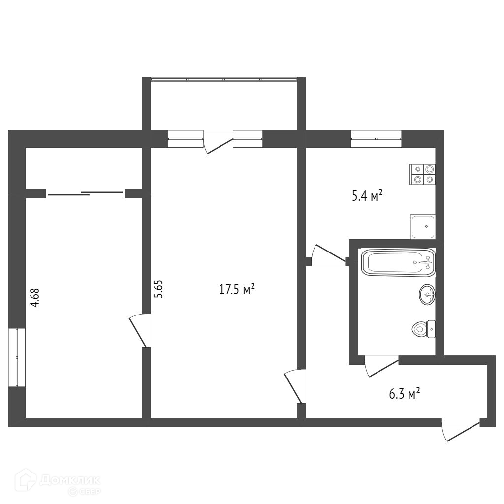 Балкон, лоджия 1 балкон