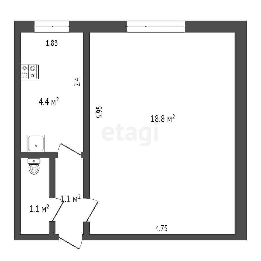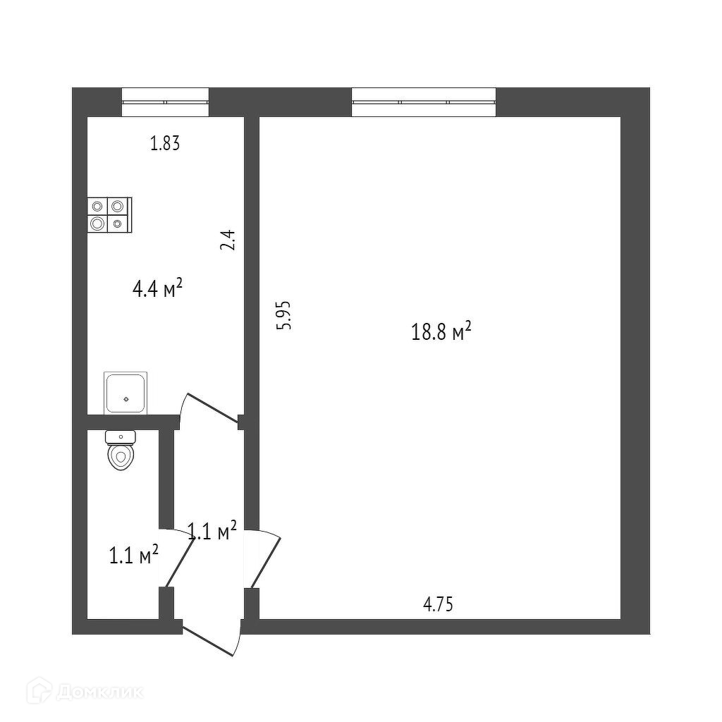 Общая площадь 25.4 м2