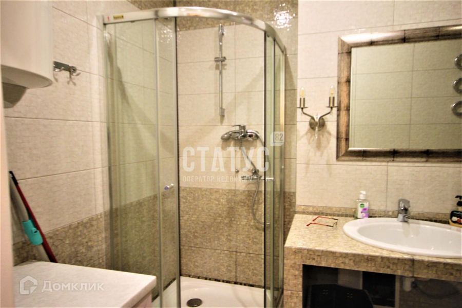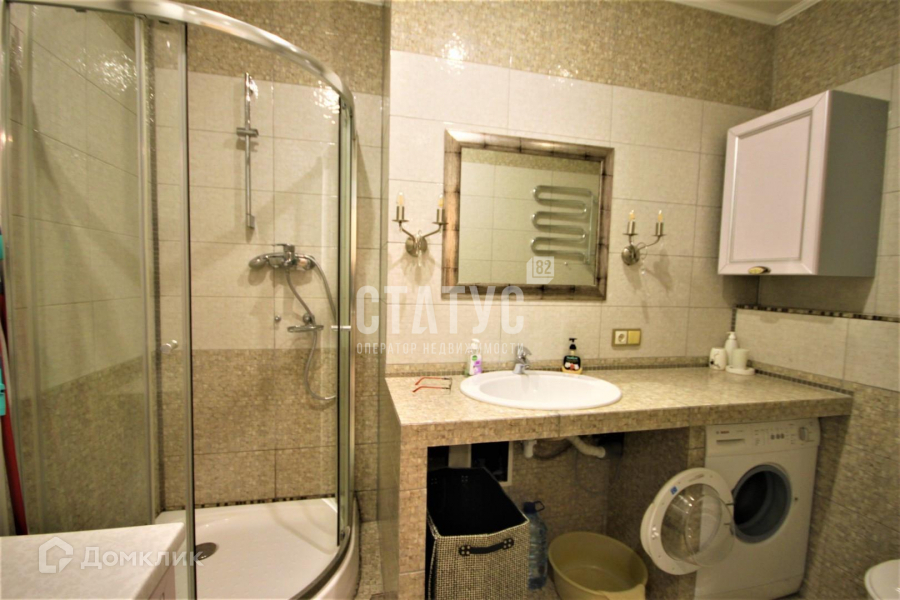 Совмещенный санузел оснащен душевой кабиной, стиральной машиной, бойлером на 80 л, электросушилкой.