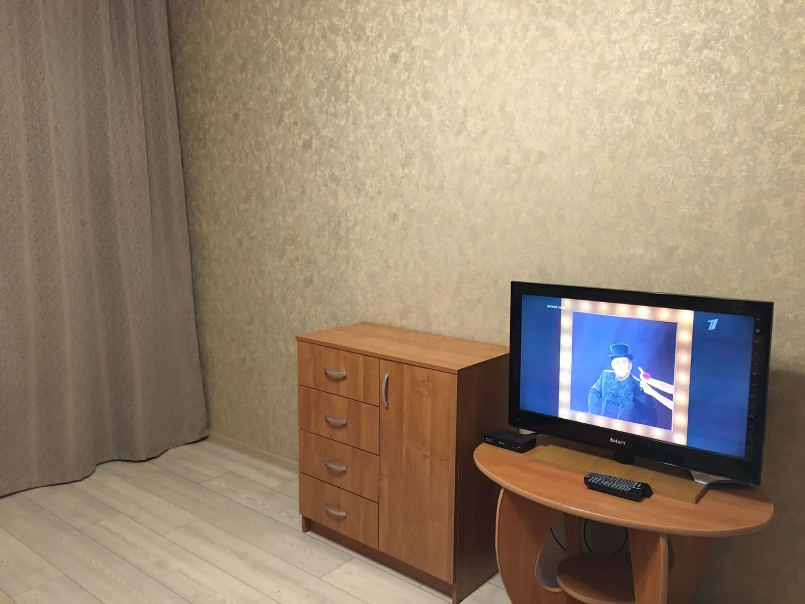 В комнате сделан ремонт - положен ламинат, поклеины обои.