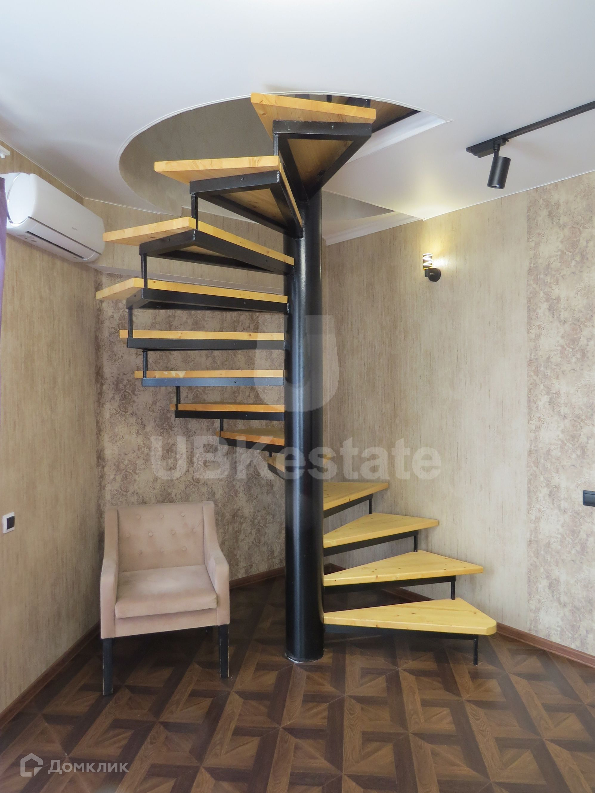 Первый этаж: кухня, гостиная, санузел, балкон.