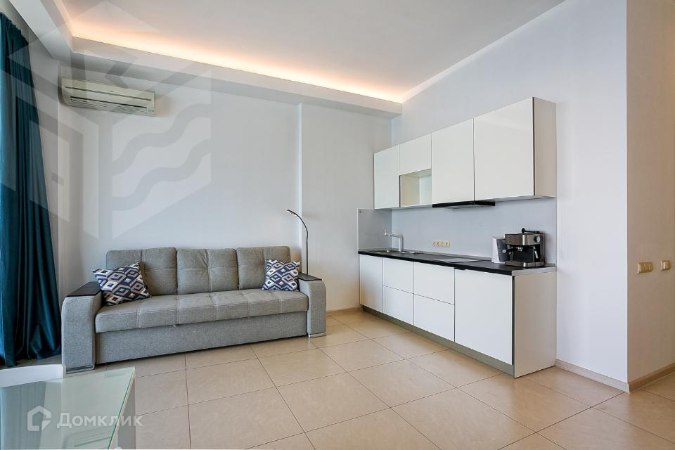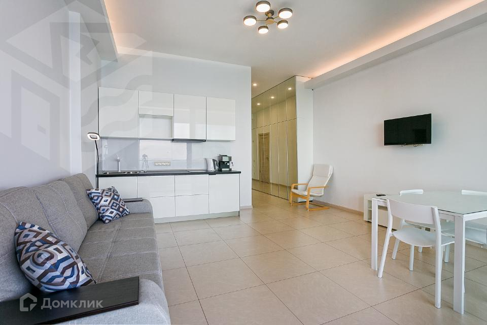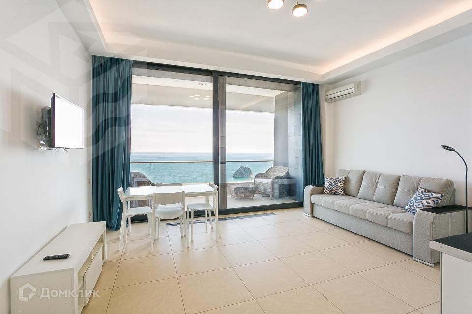 Общая площадь 60 кв.м. Спланирована кухня-гостиная, спальня и санузел. Большие панорамные окна выходят на видовую террасу. Отделка квартиры выполнена с использованием материалов высокого качества, установлена техника и мебель. Полностью готова к проживанию с момента покупки.