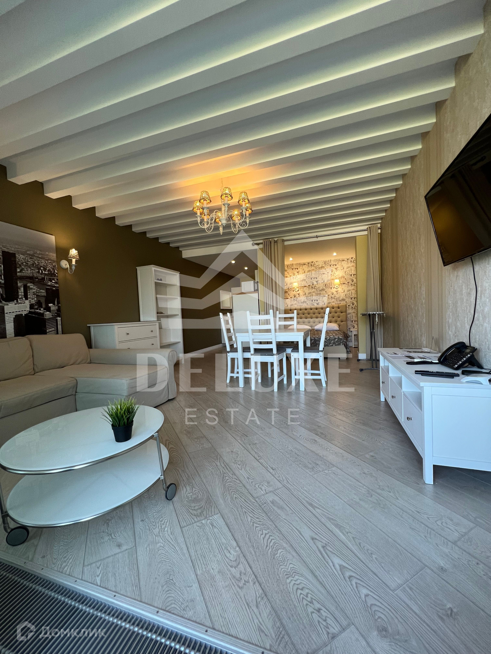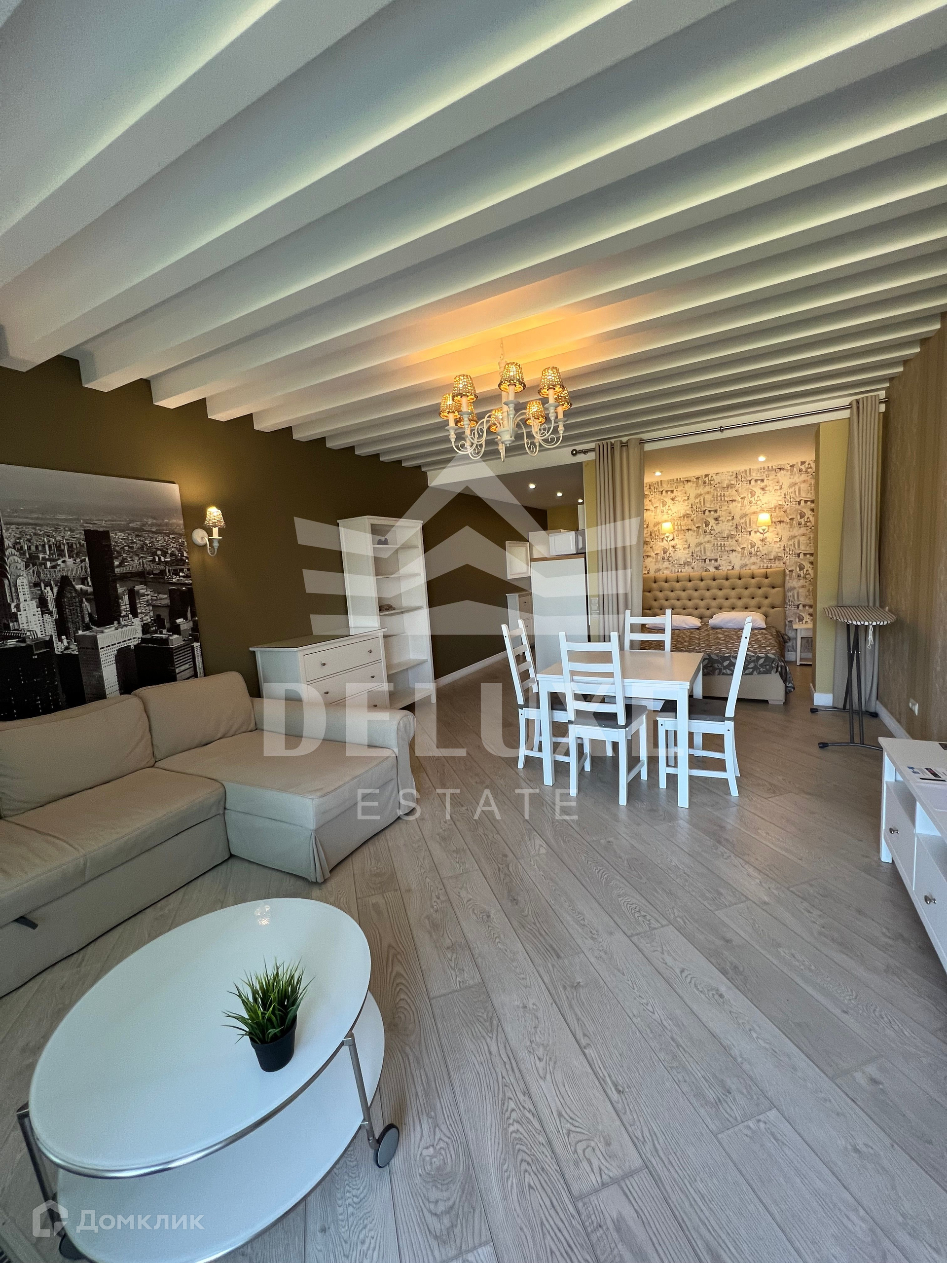 Апартаменты общей площадью 44.1 м², включая террасу 8 м², расположены на 1-м (высоком) этаже 7-этажного комплекса. В апартаментах выполнен дизайнерский ремонт. В отделке использованы только качественные материалы. Апартаменты в полном объеме обустроены премиальной мебелью и бытовой техникой известных производителей.