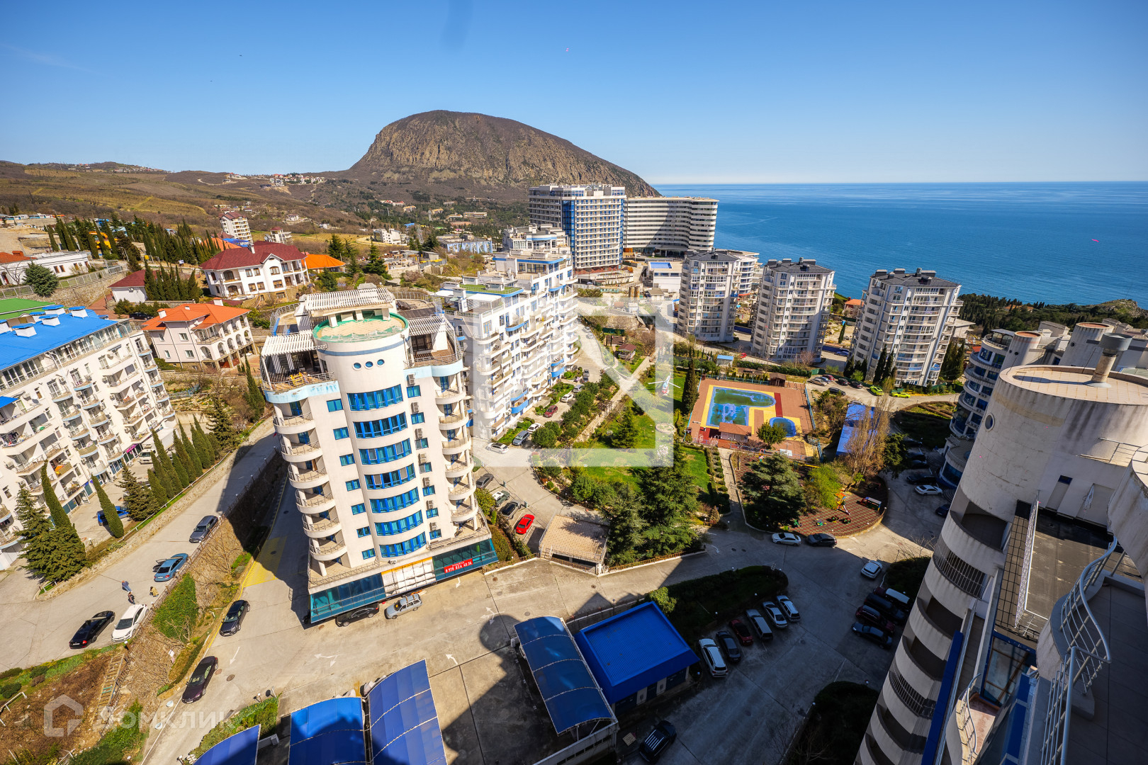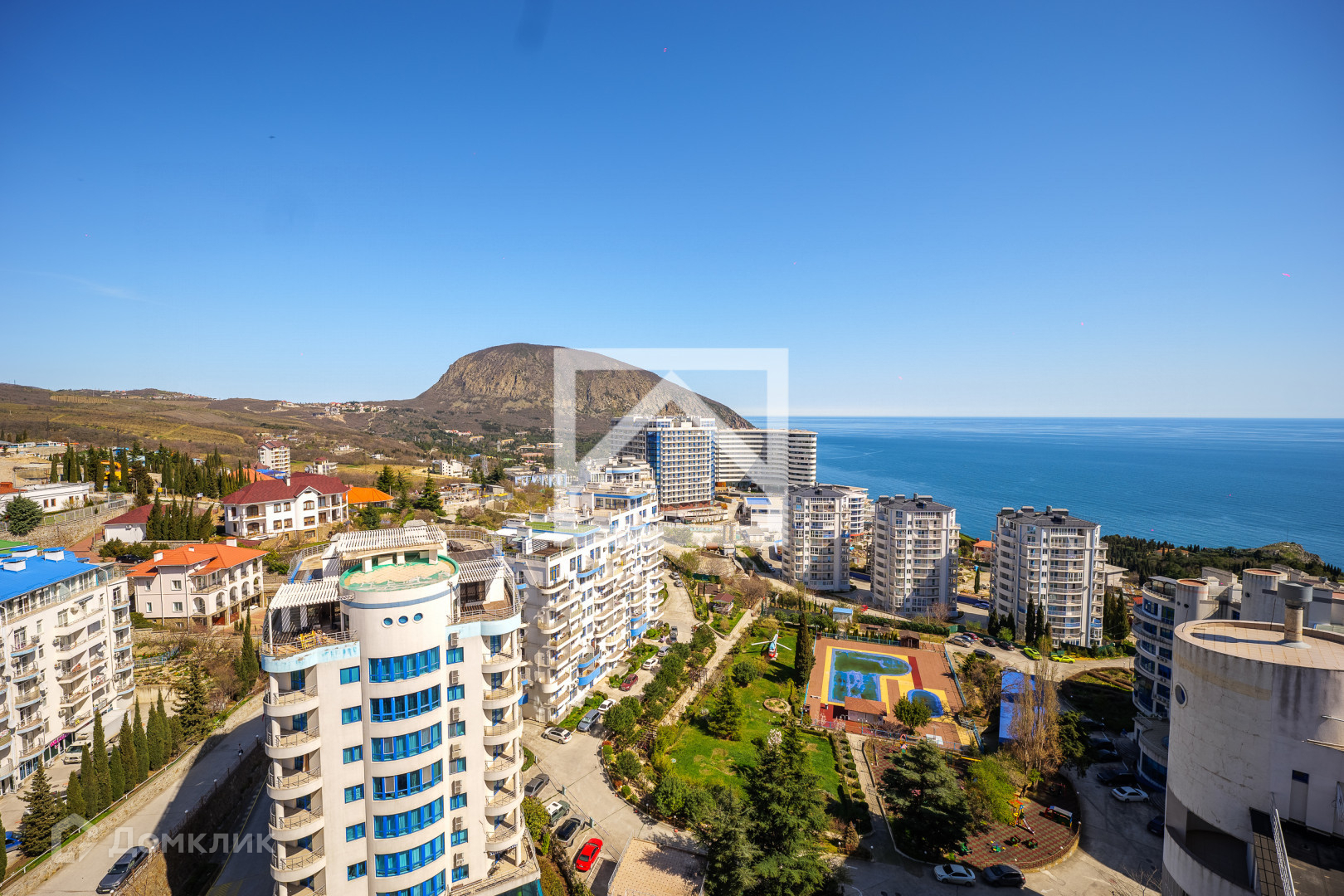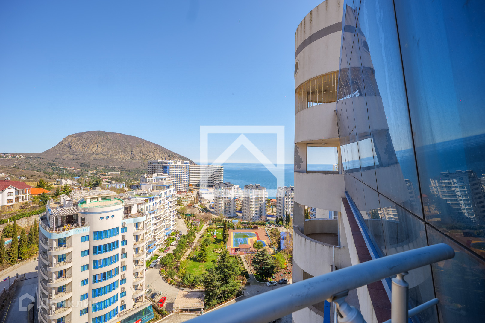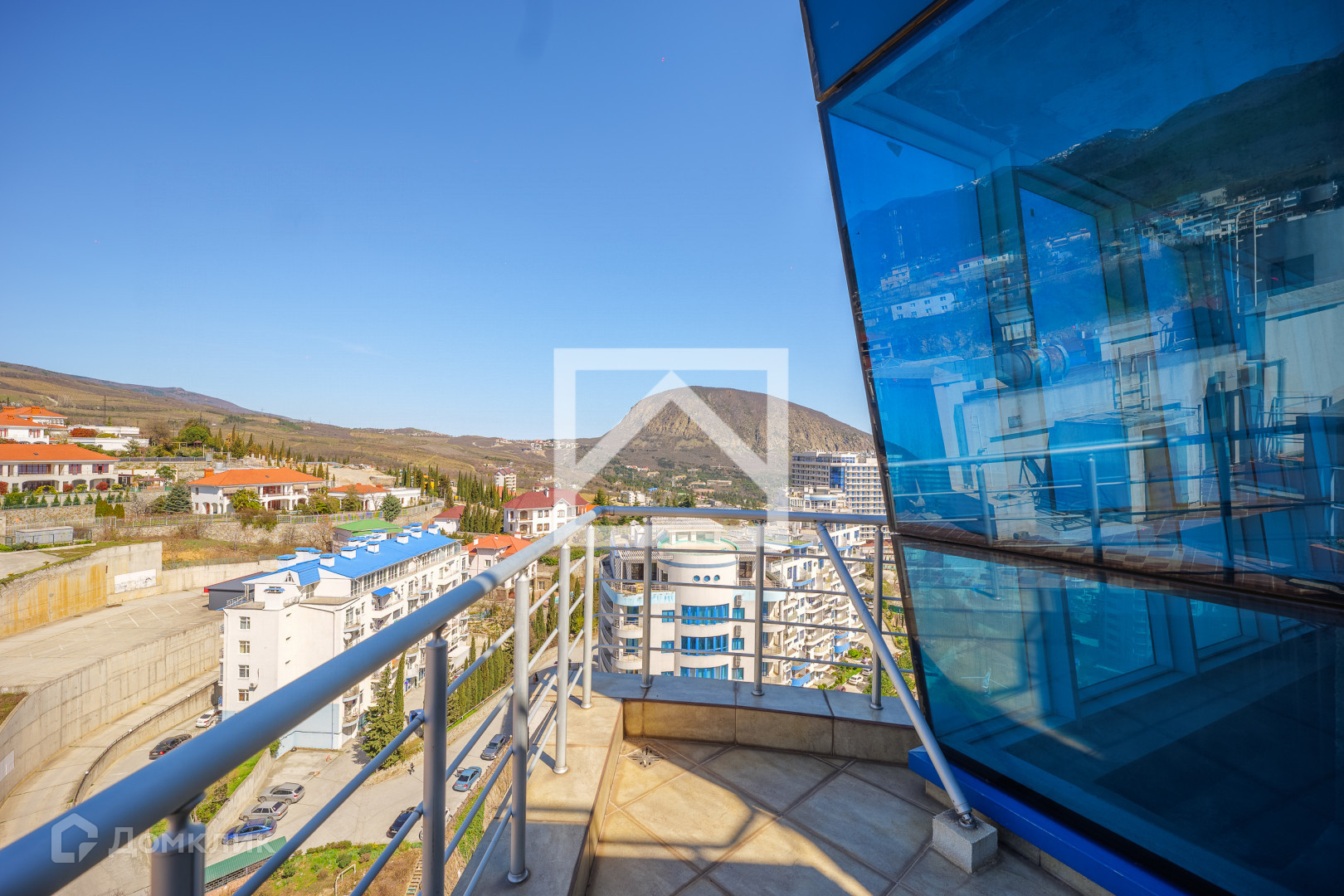 Пентхаус (85 м²) расположен на 15-этаже 15-этажного дома. Общая площадь 85 м² включая открытый балкон с панорамным видом на море, горы, старинный город Гурзуф, знаменитую гору Аю-даг и на скалы Адалары.